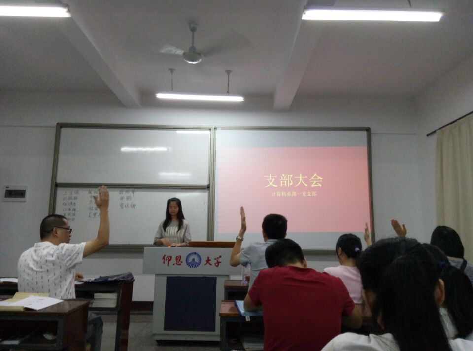 2017年6月8日晚,计算机系第一党支部在共和教学楼220召开支部大会,本次会议由党支部书记王波主持。