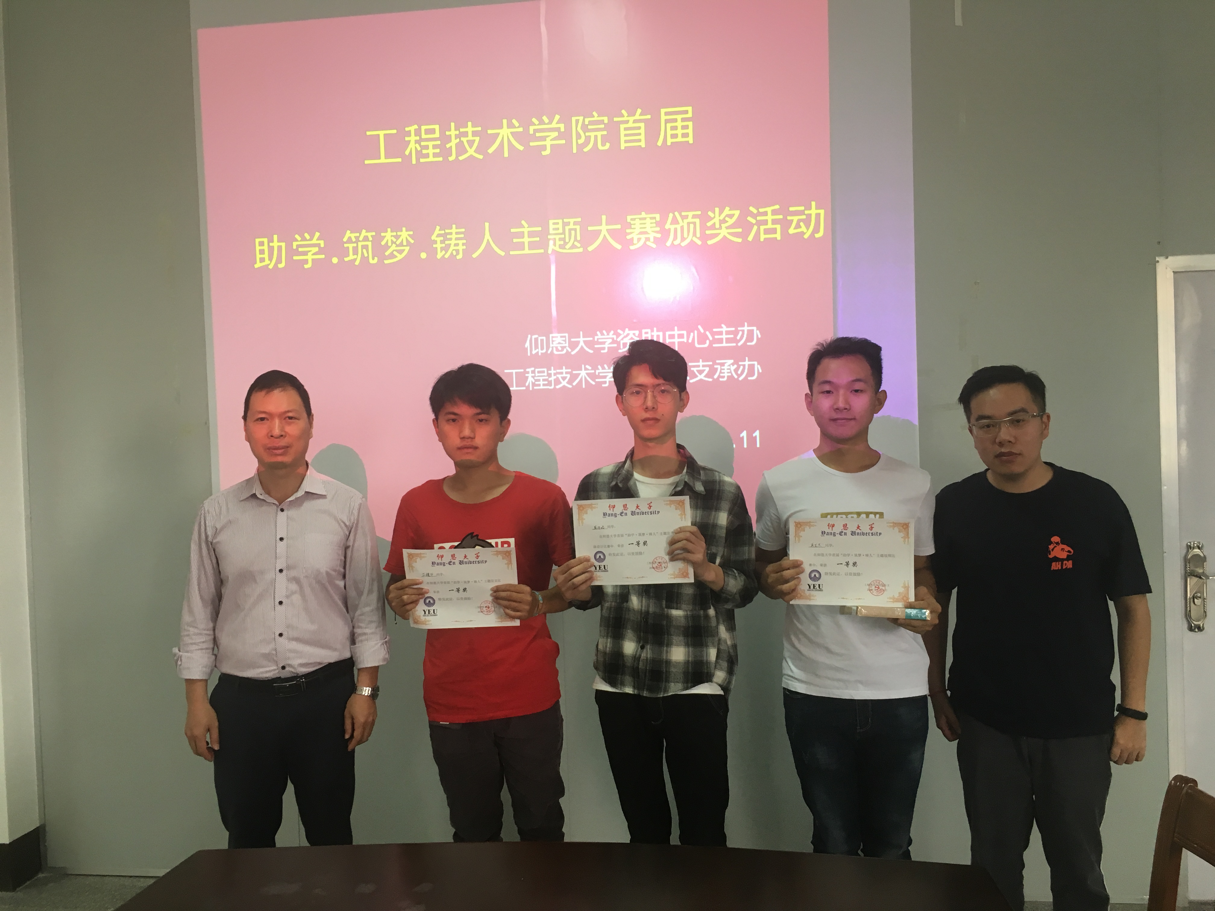 5月11日yl6809永利官网集团党总支在泽川楼四楼会议室进行“助学·筑梦·铸人”主题比赛的颁奖仪式。出席颁奖仪式学院党总支书记兼副院长曾凤生,总支副书记吕思仁,学务秘书陈旗敏以及学院辅导员,获奖者们得到了比赛的奖状和奖品,本次比赛取得圆满成功。