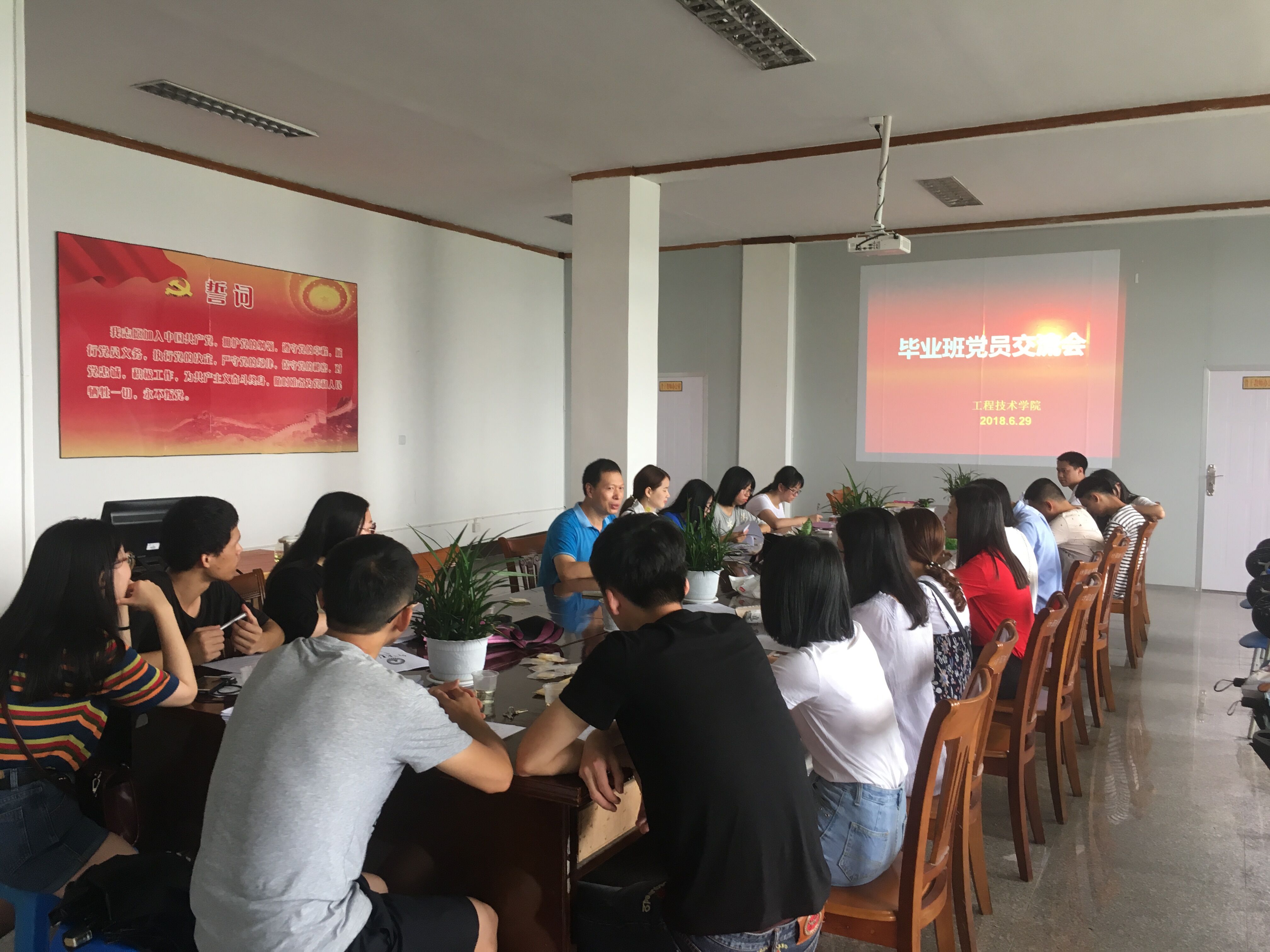 6月29日,yl6809永利官网集团2018届毕业生党员座谈会在泽钏四楼会议室举行。学院党总支书记曾凤生、副书记吕思仁与全体毕业生党员进行了交流学习。