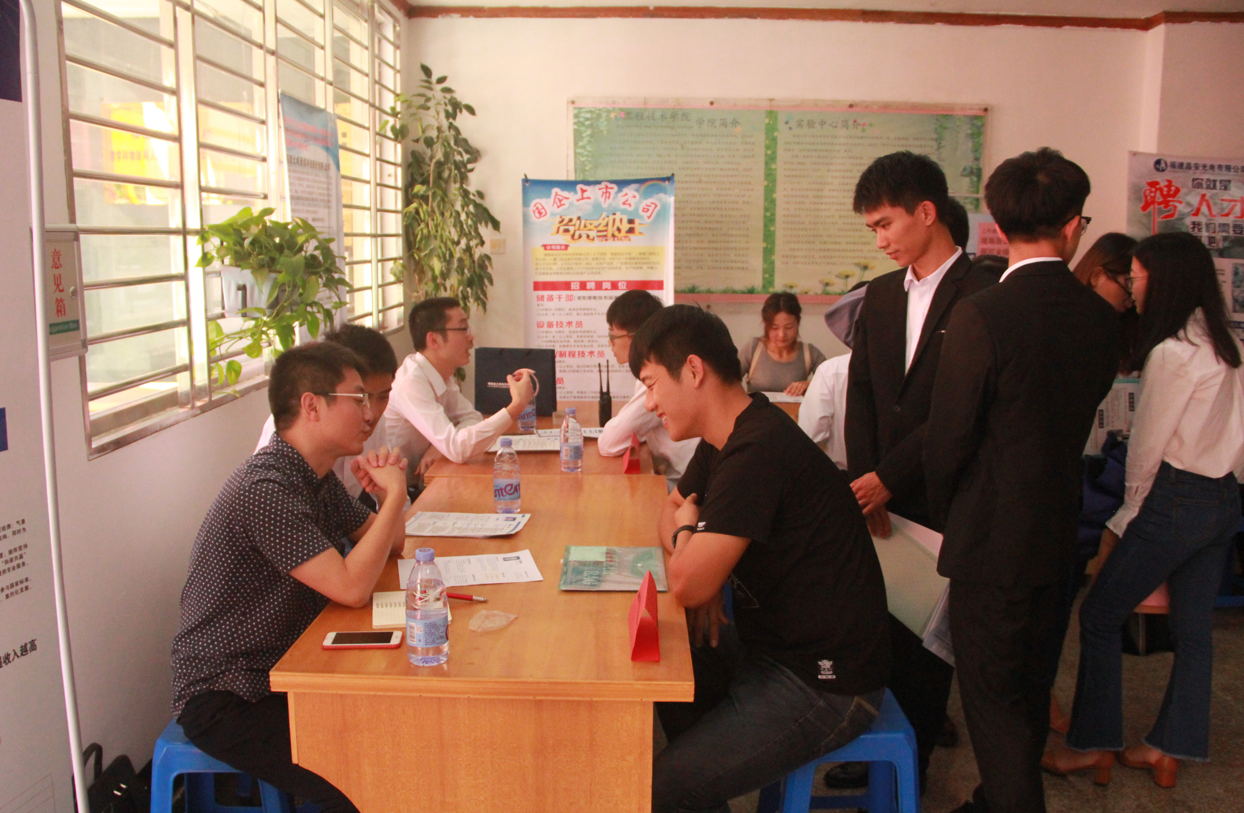 此次参加招聘会的公司有福建铁拓机械有限公司、福建晶安光电科技有限公司、福建天电光电科技有限公司、福建华云防雷装置,福建北峰通信科技有限公司、福州方正数码科技有限公司、厦门触控科技有限公司、弈恩现实(中国)等30几家工科类公司。各公司面向我院所招聘的岗位不仅是与专业和技术挂钩,如java开发,游戏开发、电子技术开发等岗位,也有会计,外贸业务等职务。会场上各公司人事向我院学生介绍了各自公司在职场中的优势,并在设计领域、招聘岗位、现有产业结构、组织构架、人力资源政策以及薪资待遇等方面做出了详细的说明。在座大学生纷纷对自己感兴趣的公司提出疑问,招聘负责人对其提出的问题进行耐心的讲解,现场气氛十分活跃。