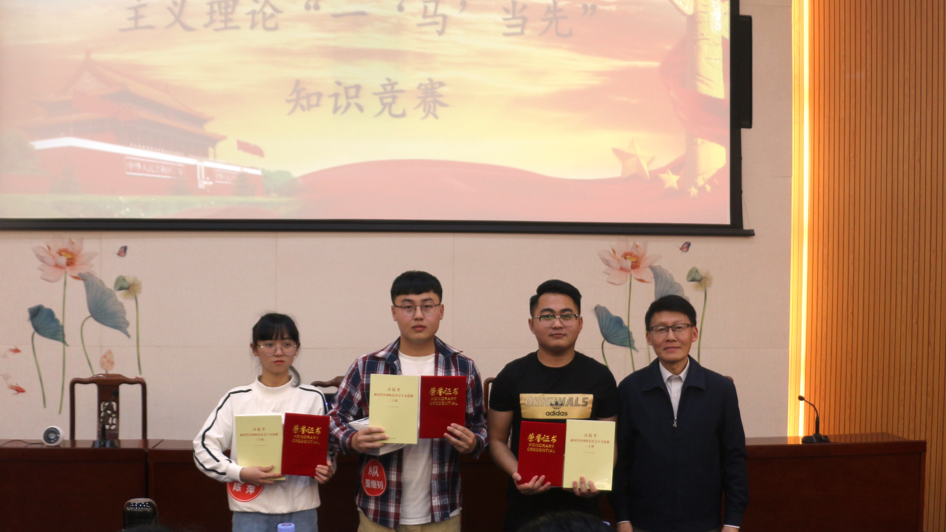 3月20日由中共yl6809永利集团委员会主办的第三届大学生学习马克思主义理论“一‘马’当先”知识竞赛在多功能报告厅落下帷幕,我院代表队获得冠军,学院老师、同学到场为参赛选手加油。
