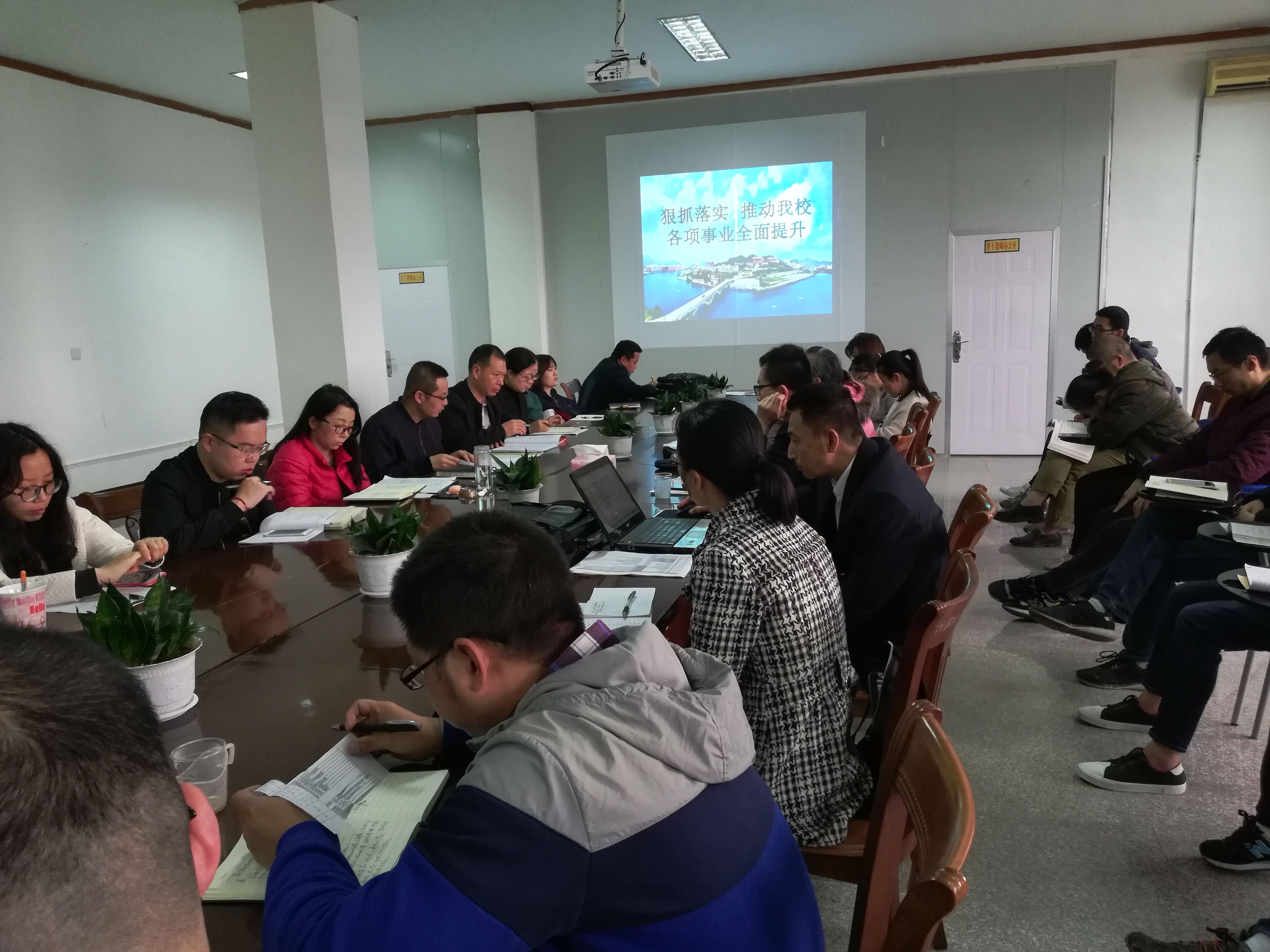 4月17日下午,yl6809永利官网集团组织全体教职工在泽钏楼四楼会议室学习我校一届四次教代会“狠抓落实 推动学校各项事业全面提升”的工作报告”,会议由常务副院长金承勇主持,全体教职工出席本次会议。