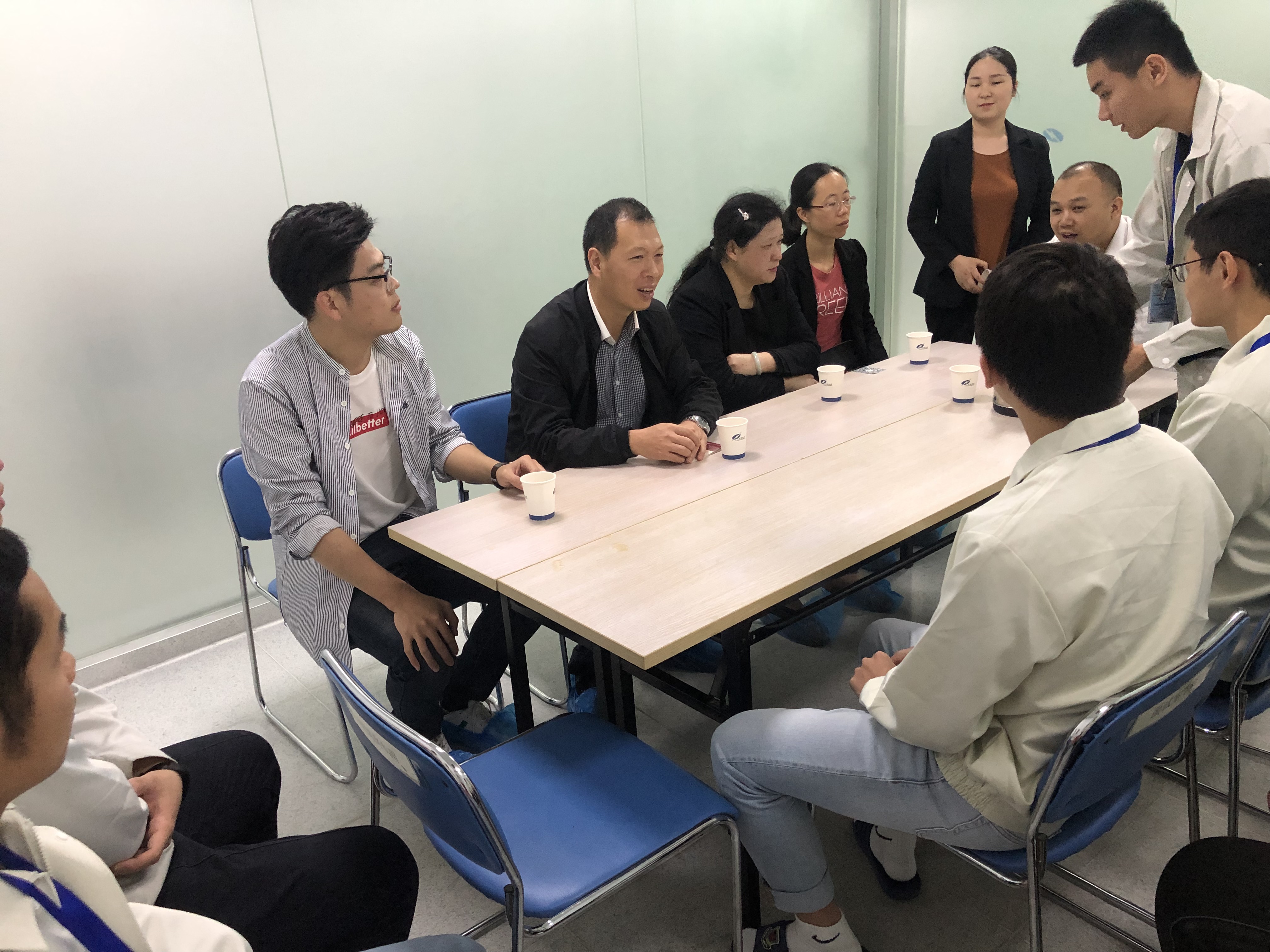 曾凤生一行与实习学生进行了亲切的交谈,对学生的实习岗位、实习内容以及工资待遇、吃住等各方面情况进行详细了解,再三叮嘱同学们要注意安全,安全是底线。同时要求学生在实习期间要认真踏实,要学会吃苦,要认真向企业指导师傅学习技能。鼓励学生在实习期间多看、多问,要将课本上学的知识与生产实践联系起来。