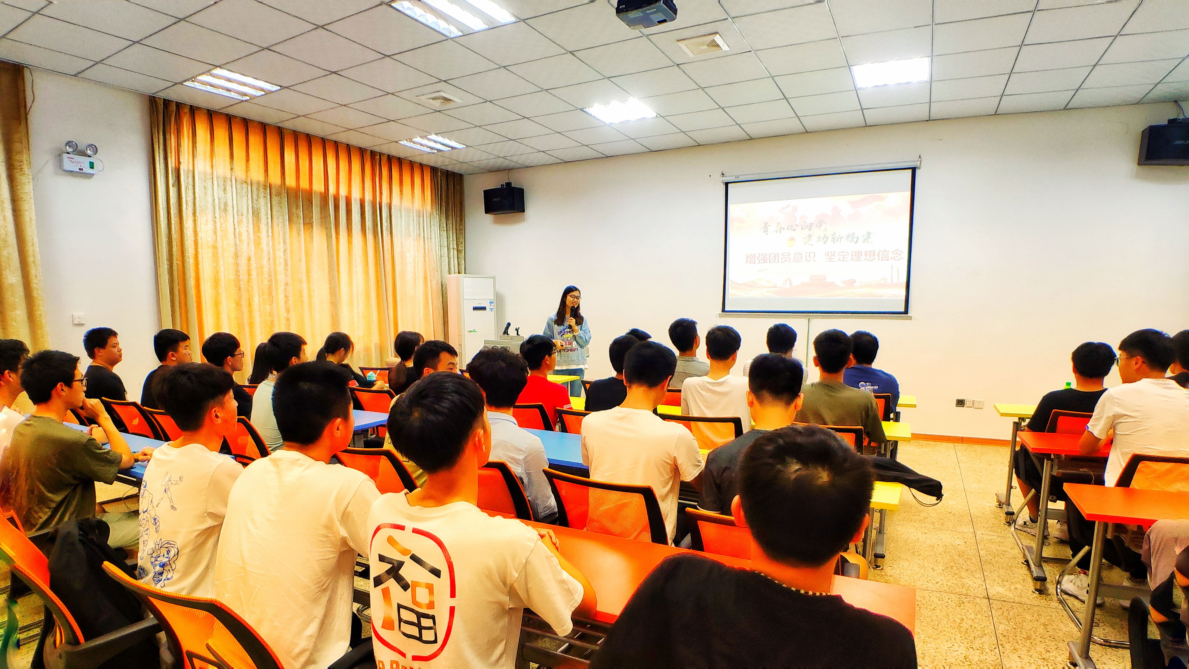 5月17日下午,以“青春心向党·建功新福建”为主题的“青马之光”主题宣讲活动yl6809永利官网集团宣讲会于第一教学区创业园培训室举行。此次活动邀请了人文学院团委书记朱婷主讲《增强团员意识,坚定理想信念》,2018级电气及其自动化1班团支部全体成员到场聆听。
