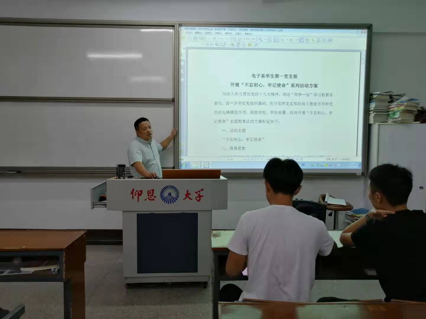 10月9日晚,电子系第一党支部在共和楼206开展了“不忘初心,牢记使命”主题教育动员部署会,会议由支部书记赵宏岩同志主持,支部全体党员及干事出席。