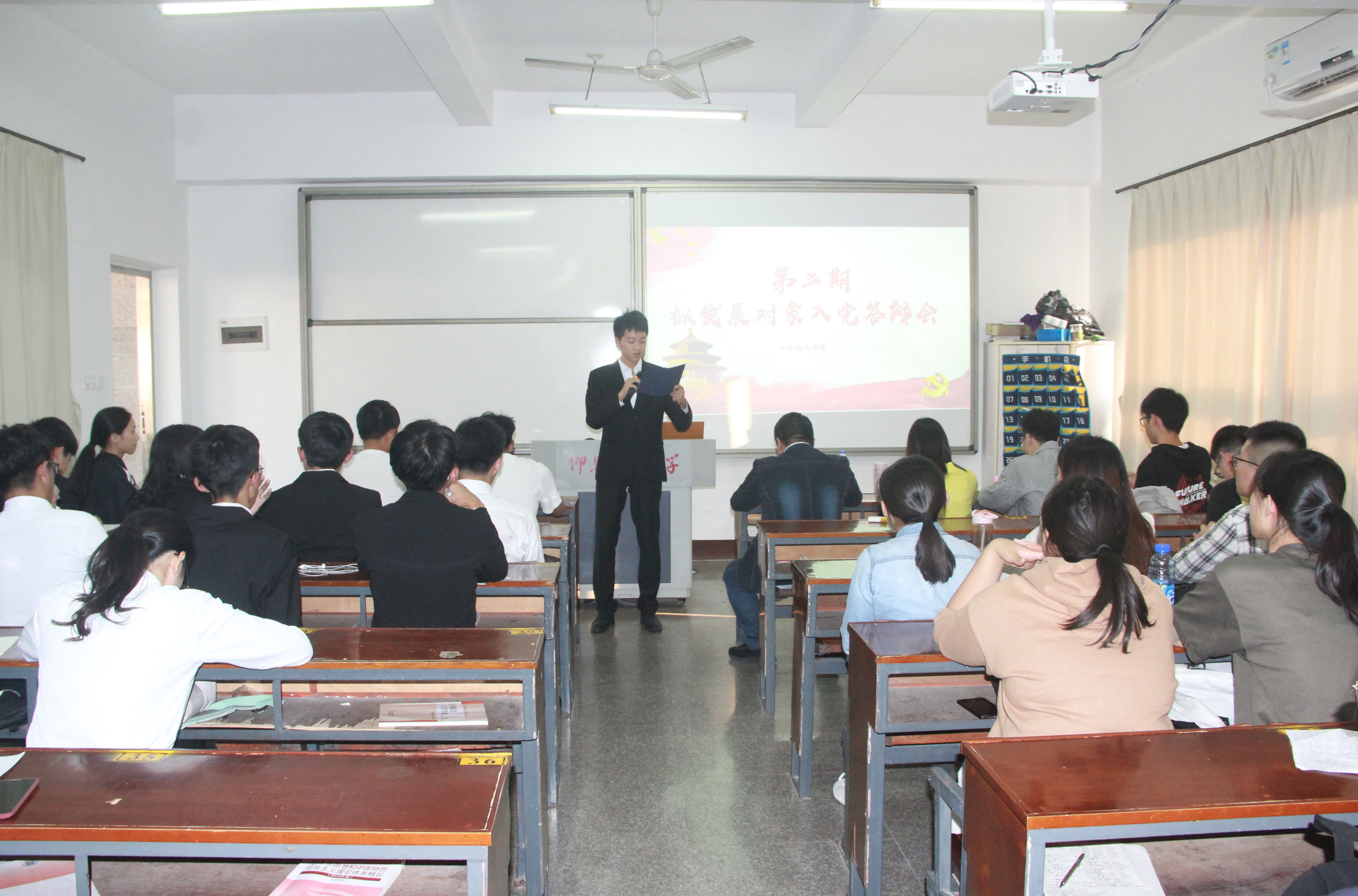 为贯彻落实中共中央办公厅印发的《中国共产党发展党员工作细则》提出的发展党员新16字方针:“控制总量、优化结构、提高质量、发挥作用”确实提高大学生党员发展的质量,保持党的先进性和纯洁性。我院党总支于10月24日,在共和教学楼206、207、208教室举办了第二期拟发展对象入党答辩会,学院副书记吕思仁,支部书记赵宏岩、王波、各支部支委等出席并担任答辩评审团。此次活动的开展有效助推了“不忘初心、牢记使命 ”主题学习教育的深入。学院党总支以入党动机考察、党的基本理论学习考察、时事政策考察作为答辩内容的重要组成部分,全面考察拟发展对象的综合素质。