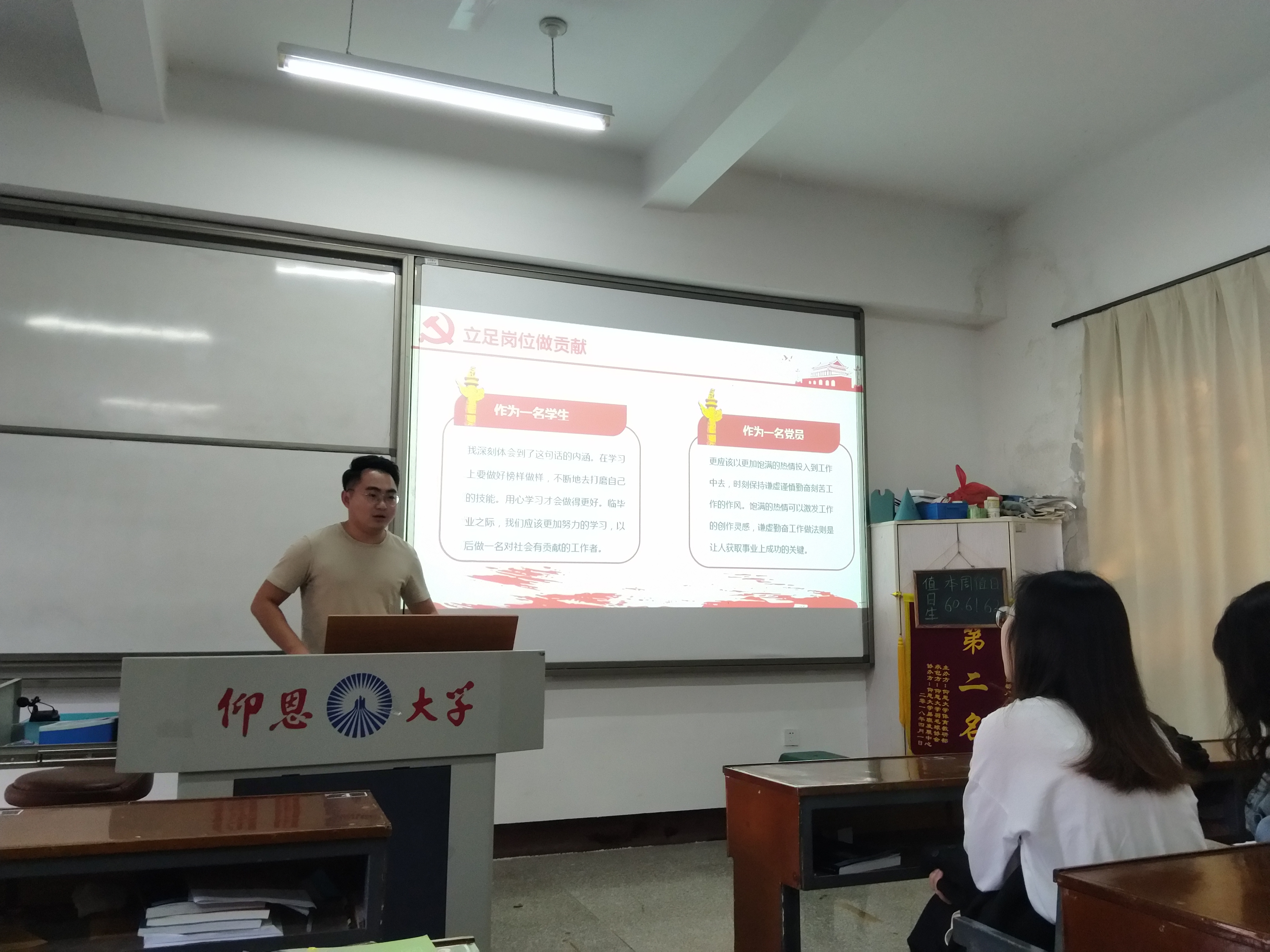 本次学习分为什么是初心、立足岗位做贡献、我们的初心和使命、不忘初心永久奋斗四个部分。杨锦锋说:一名党员只有不忘初心才会找对人生的方向,才会坚定理想追求,强调要永远把人民对美好生活的向往作为奋斗目标,呼吁从实际出发,立足于当下,明晰作为一名学生党员的职责,敢于直面问题,敢于刮骨疗毒,永葆作为一名共产党员的蓬勃朝气。
