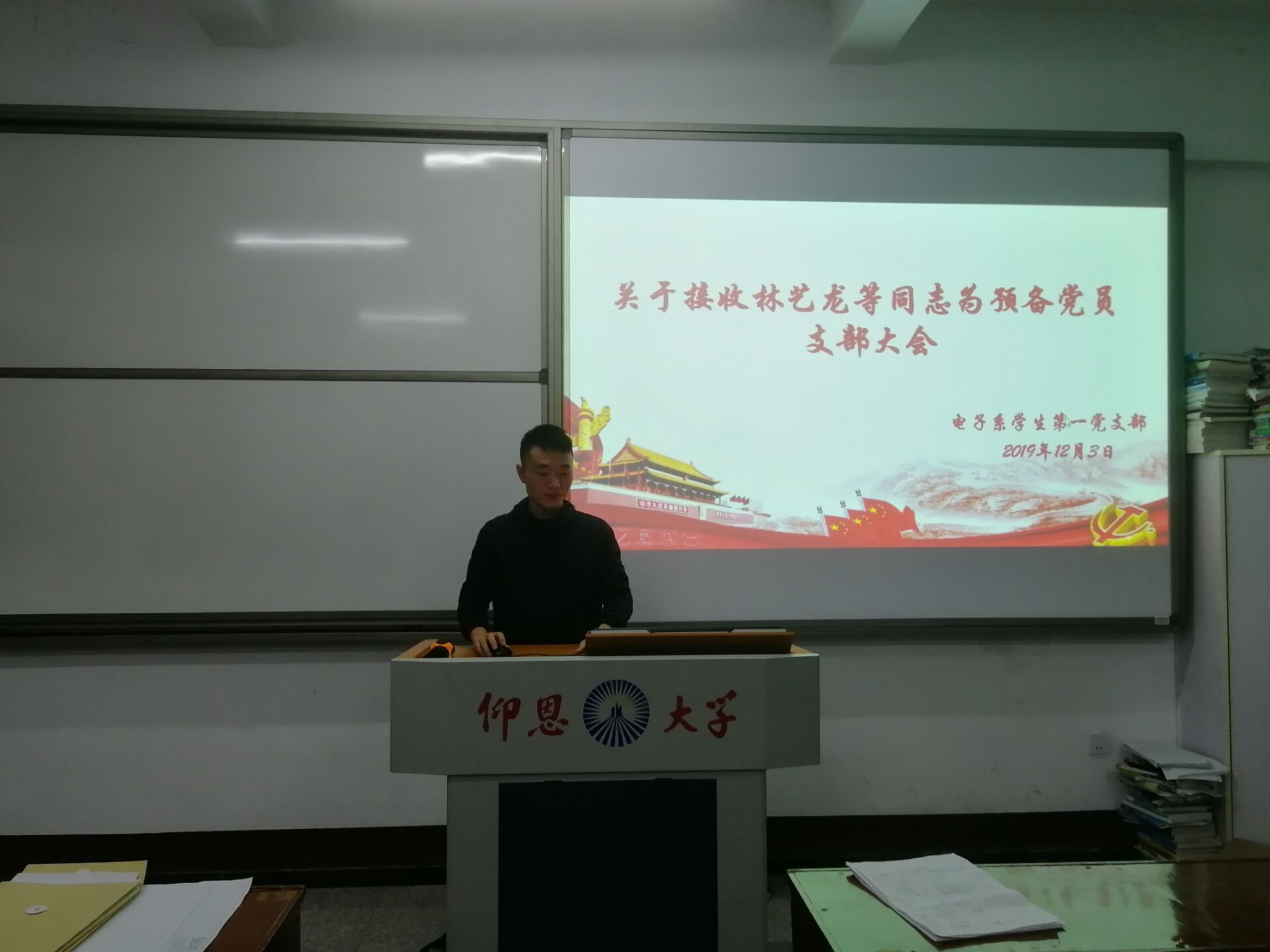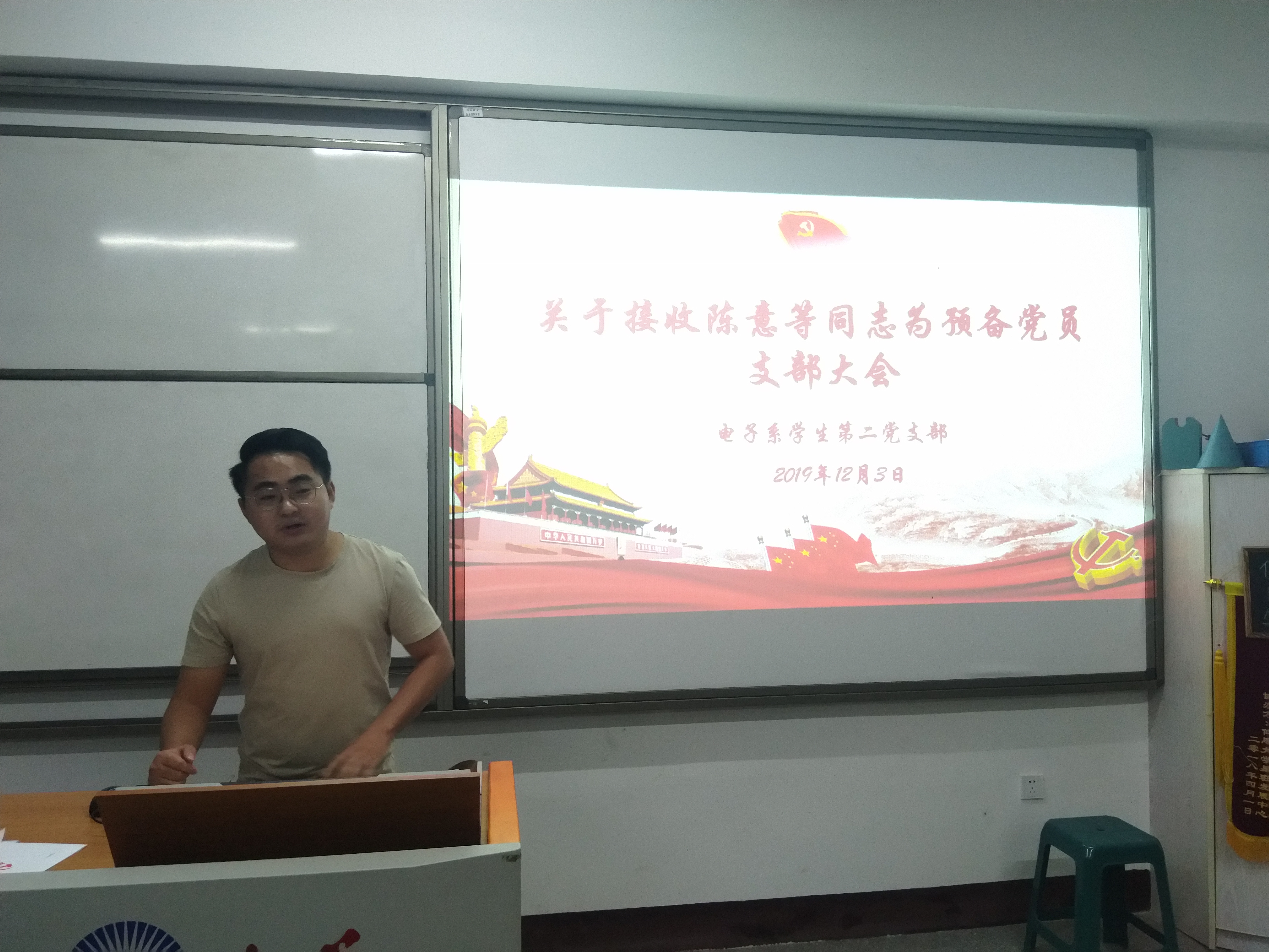 12月3日-4日,我院计算机系第一党支部,计算机系第二党支部,电子系第一党支部,电子系第二党支部顺利召开接收预备党员大会,大会由各支部书记主持。