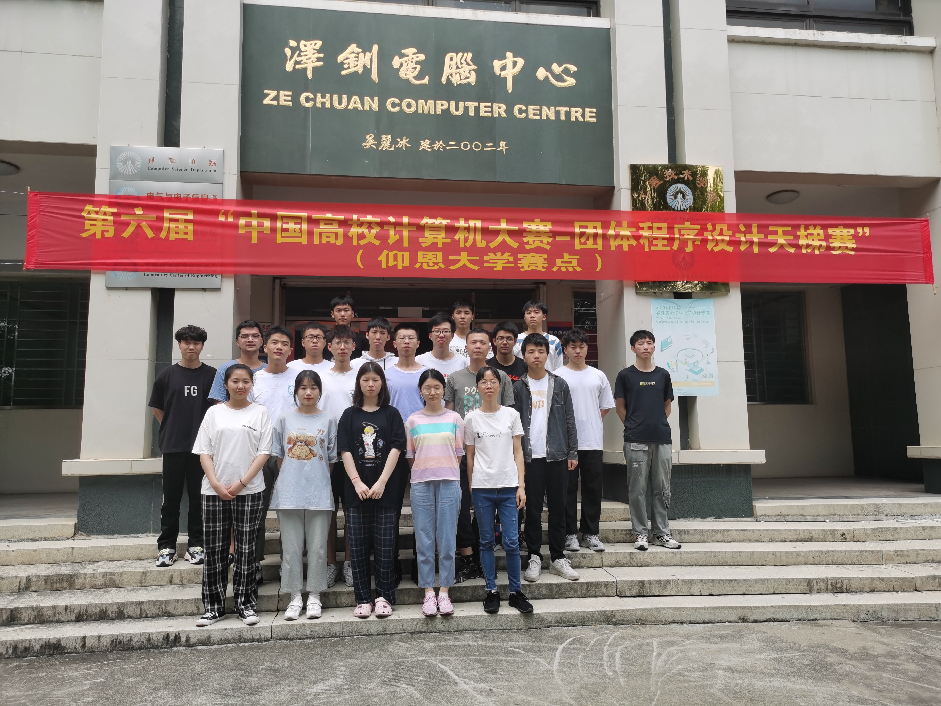 师生合影 中国高校计算机大赛是由教育部高等学校计算机类专业教学指导委员会、教育部高等学校软件工程专业教学指导委员会、教育部高等学校大学计算机课程教学指导委员会和全国高等学校计算机教育研究会联合主办,是中国教育界首个由计算机领域的三个教指委和全国高等学校计算机教育研究会首次联合主办面向高校学生的高水平计算机类竞赛。