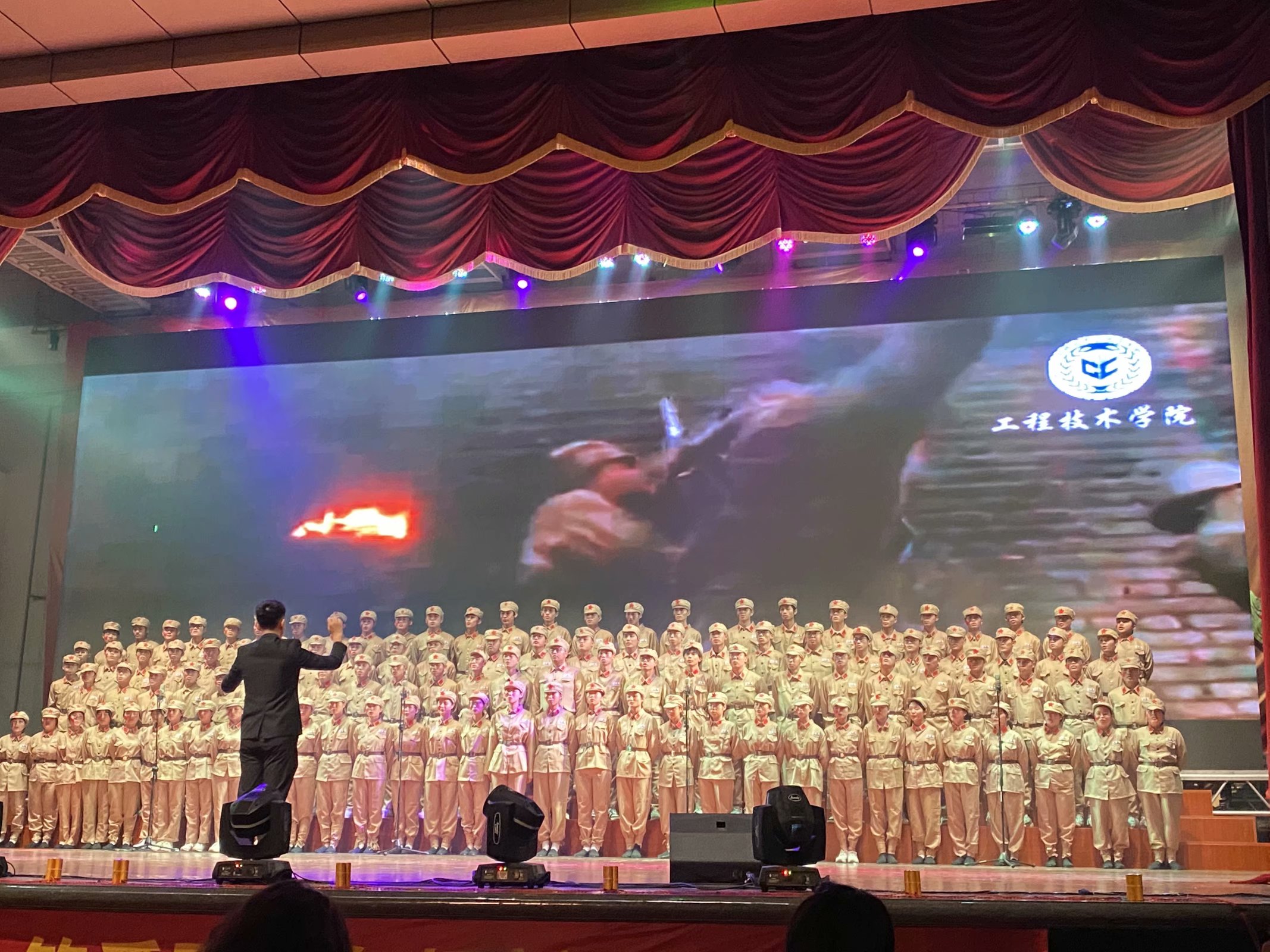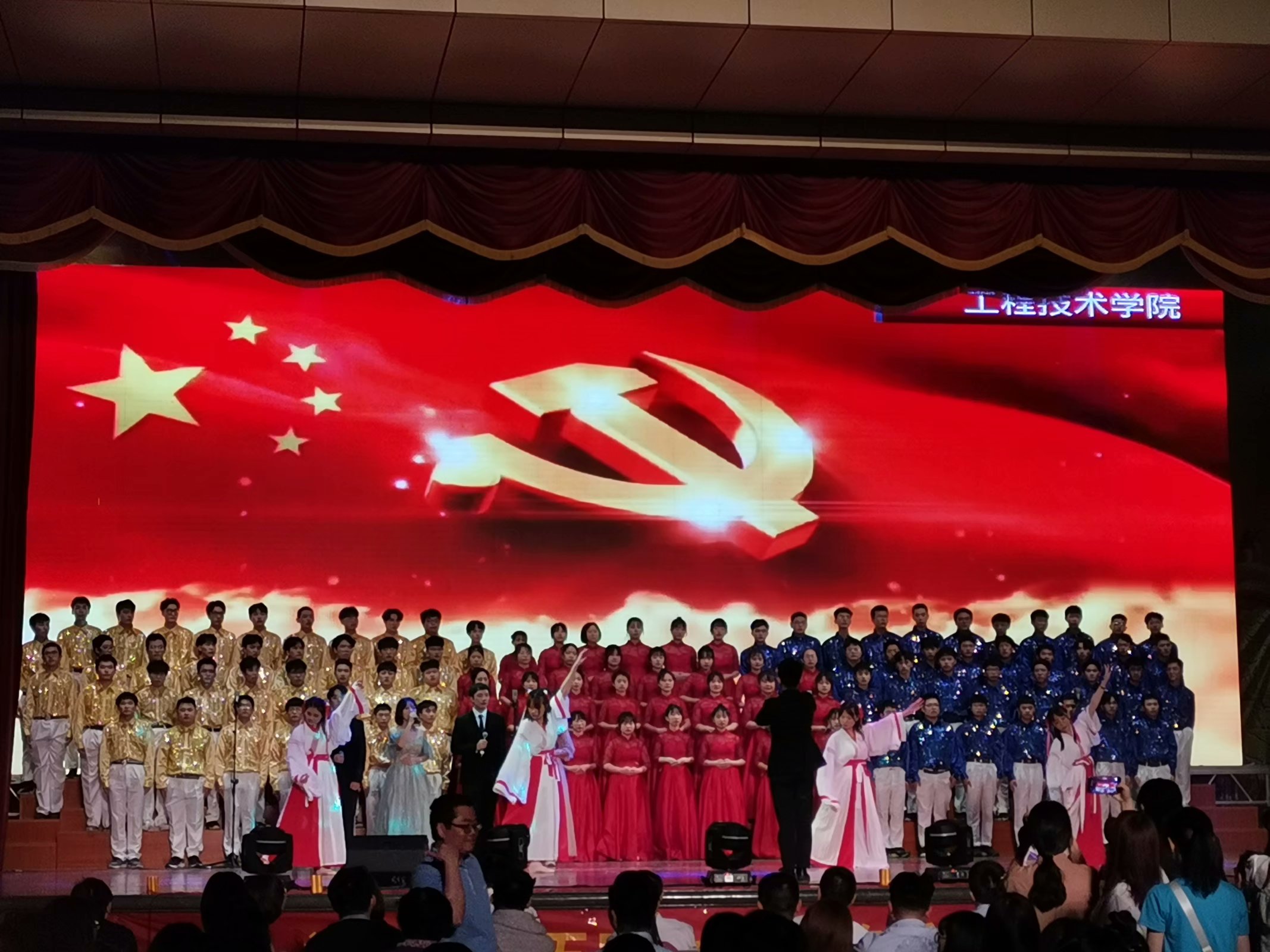 为庆祝建党100周年,弘扬五四精神。学校举办了第二十一届五四合唱比赛,决赛于4月29日晚圆满结束。我院组建两支代表队参加决赛,工院一队和二队,经过充分准备、精彩演绎分别荣获三等奖。  工院一队  工院二队 决赛期间,我院同学们歌声嘹亮,服饰整齐,表演多样,赢得现场观众一阵阵的欢呼、喝彩。工院一队演唱了歌曲《太行山上》和《七律·人民解放军占领南京》,彰显出中国人民坚强不屈、勇敢向前的精神。工院二队演唱了《我们走在大路上》和《伟大的中国伟大的党》,唱出了同学们斗志昂扬、积极向上的青春朝气以及深深的爱国情怀和强烈的民族自豪感。 青年之声,致党颂党。本次合唱比赛,同学们用歌声抒发爱国、爱党的情怀,充分展现了工院学子的精神风貌、时代风采以及爱国精神。(yl6809永利官网集团/文图) | |