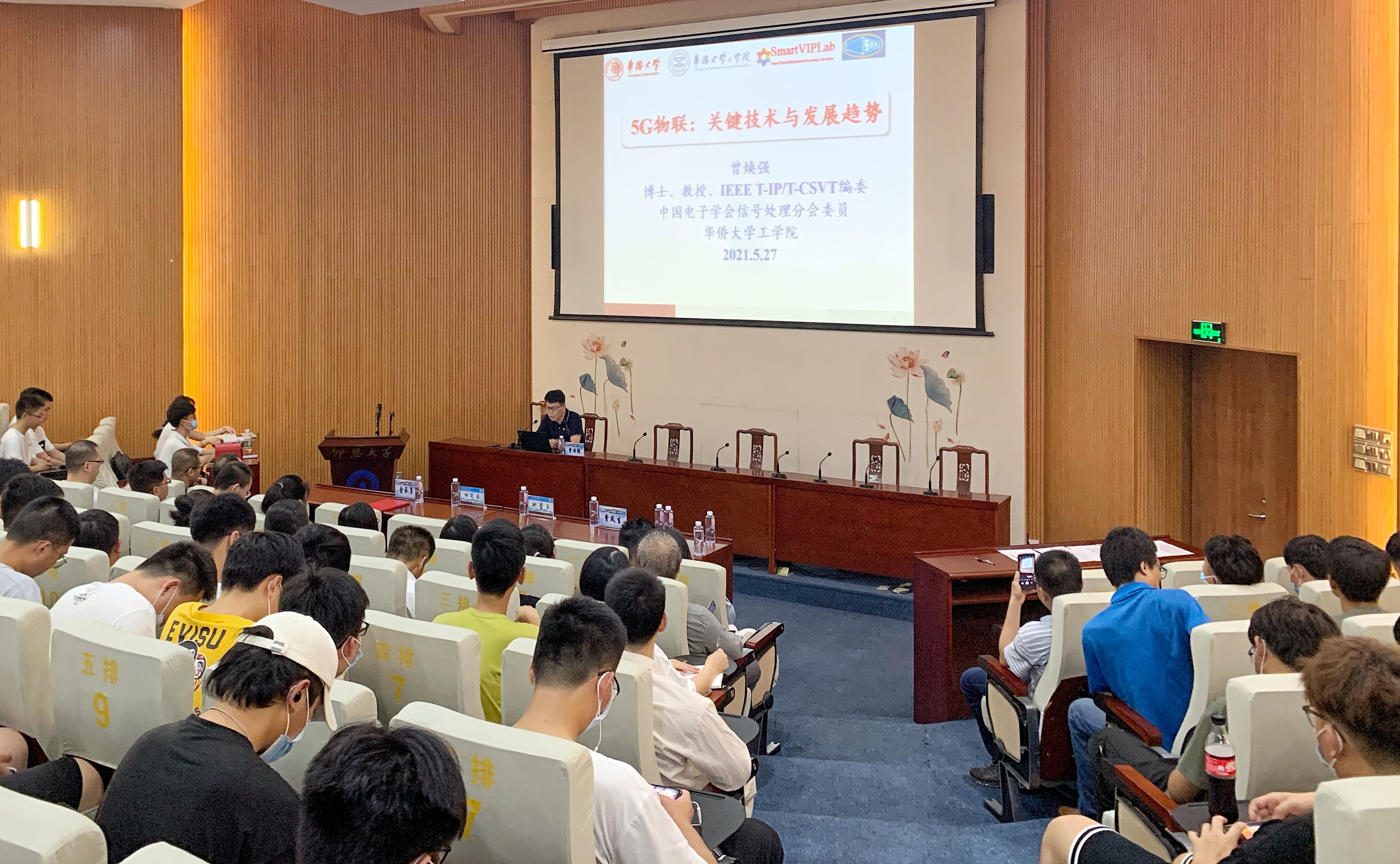 曾焕强的报告深入浅出、语言风趣幽默、引人入胜,现场气氛活跃,报告会上师生们就5G物联网在行业企业的应用同曾教授进行广泛深入的交流。