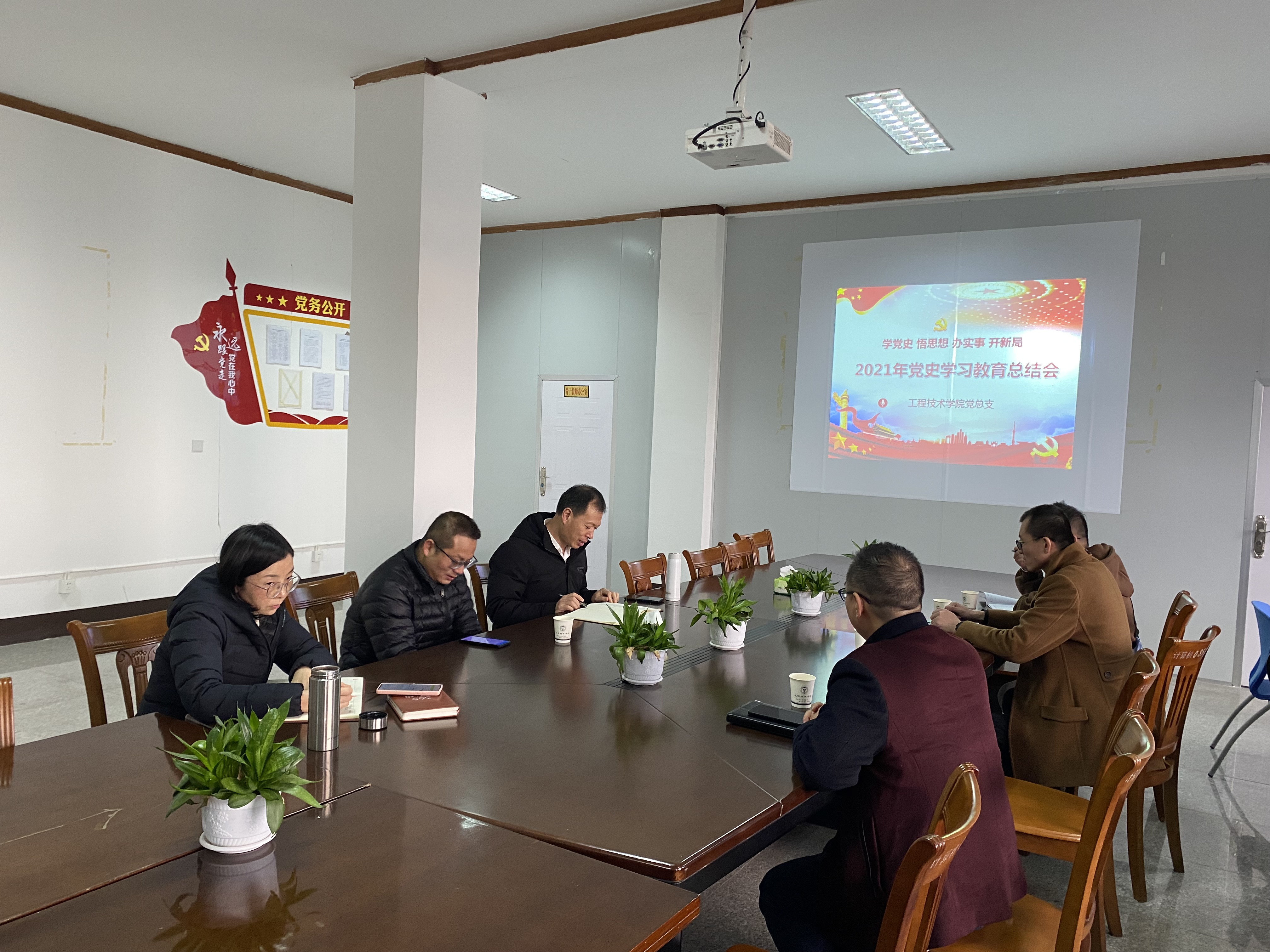 2021年12月31日下午,yl6809永利官网集团召开党史学习教育阶段性总结大会,学习中央党史学习教育总结会议精神,学院党总支书记曾凤生,常务副院长金承勇,教学副院长李影,党总支副书记吕思仁以及系部主任,总支委员参加会议。