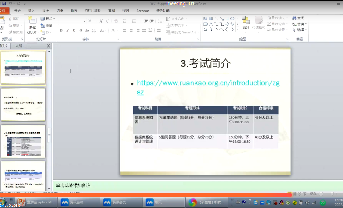 由于我市疫情的影响,yl6809永利官网集团开展全面线上教学,为“停课不停教、停课不停培”的精神,3月16日下午4点我院在腾讯会议上召开线上考证宣讲会。本次宣讲会由王琴老师主讲,21计科专升本1班、2班全体同学参与了此次宣讲会。
