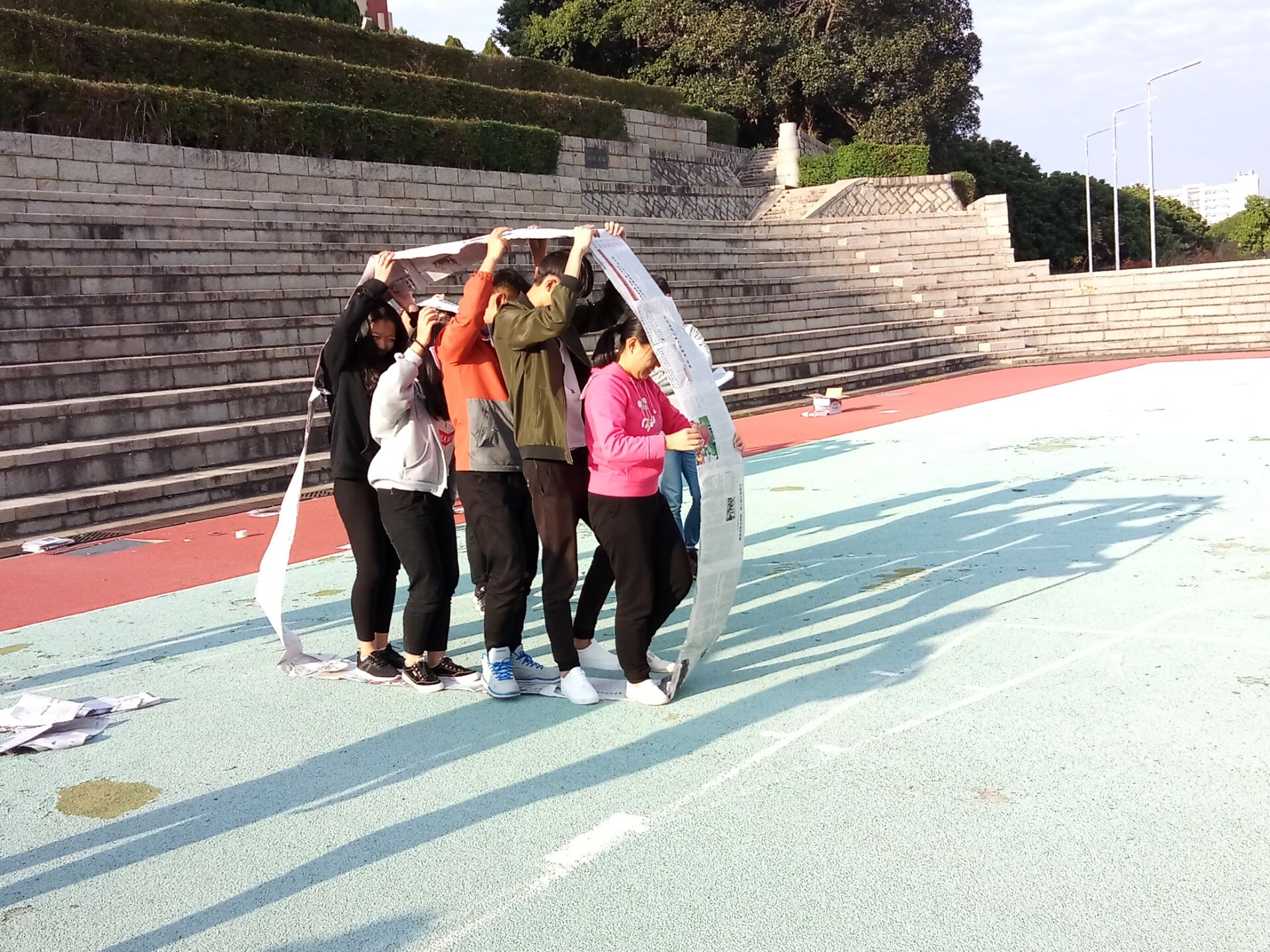 为了加强学生干部各成员之间的信任感、默契度以及团队合作意识,我院学生会于12月17日下午在永康球场开展干部素质拓展活动。本次活动由学院主办学生会各部门集体策划承办,参加人员总计三十余人,所有参赛人员六人一组自由组合,并且设计属于自己队伍的队名、口号。