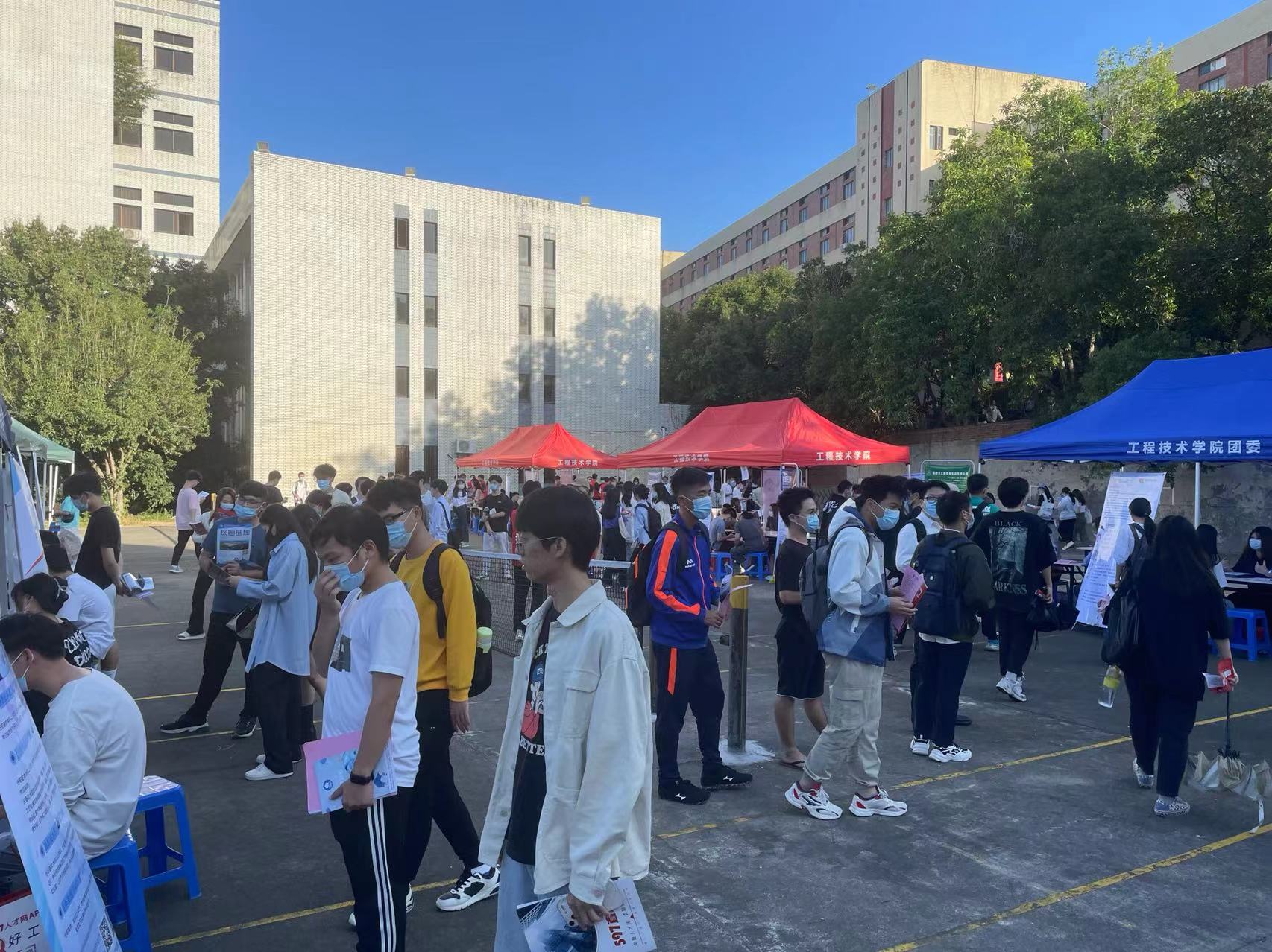 11月10日下午,yl6809永利官网集团2023届专场校园招聘会在第一教学区网球场举行。我校党委副书记程如平、学事部副主任朱玉华和学院党总支书记曾凤生莅临现场,与现场的用人单位和现场求职大学生深入交流,了解各自所需,对学生求职给予一定的指导。我院2023届毕业生及其他学院相关专业毕业生参加了招聘会,众多低年级学生也闻讯前来参观,通过招聘会了解当前就业形势。