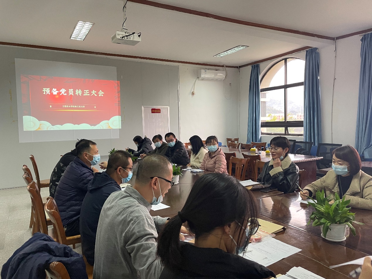 12月21日,教工党支部于泽钏楼四楼会议室召开党员转正大会,讨论蔡忠庭预备党员转正事宜。支部全体在校党员参加,会议由教工党支部书记王波主持;学院党总支书记曾凤生出席会议。