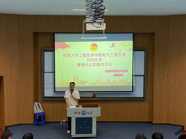 4月23日,电气工程及其自动化系团总支2023年暑期社会实践动员大会于新区和昌楼海纳讲堂晚七点召开。此次动员大会由电气系团总支组织召开,电气系团总支书记蒋心益主持,22级电气系辅导员裴爱瑶参与。