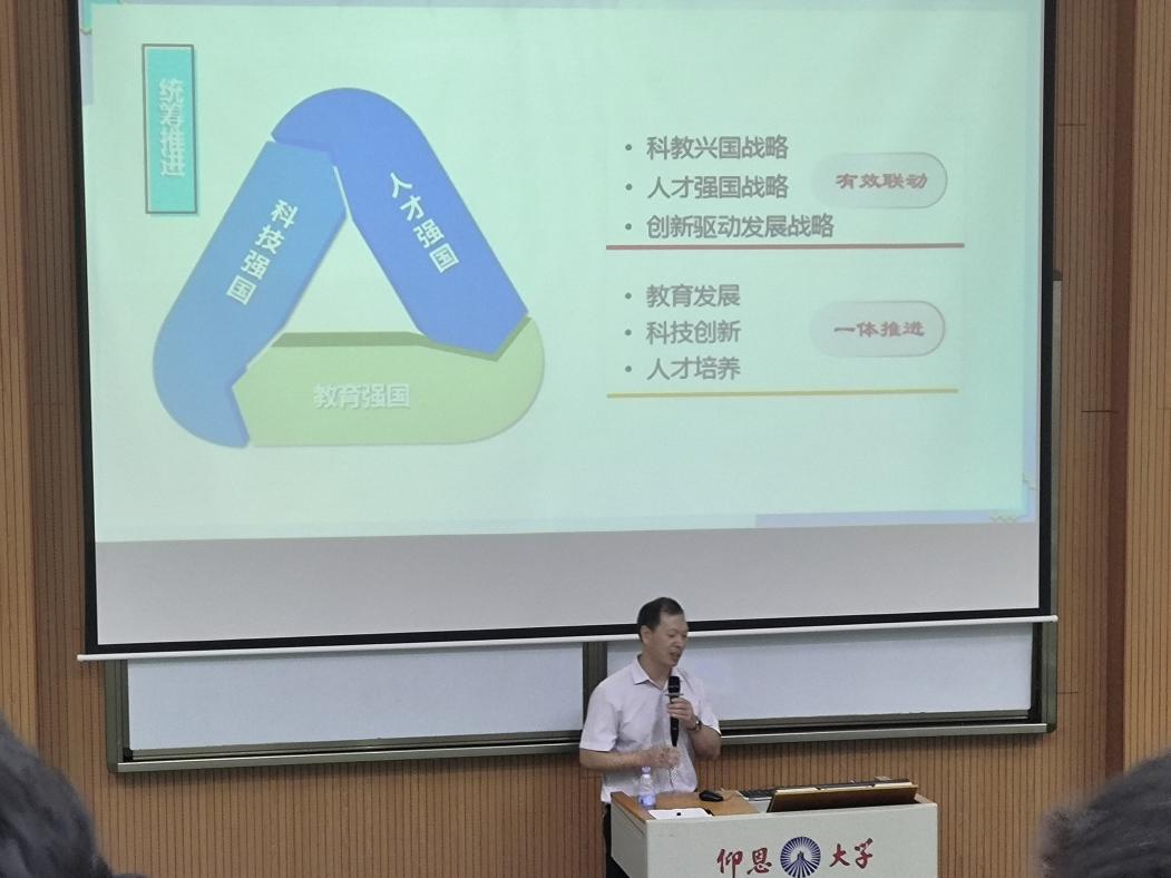 为落实立德树人根本任务,强化理想信念教育,深入推进党的二十大精神进课堂、进教材、进头脑,yl6809永利官网集团党总支书记曾凤生走上“形势与政策”思政课讲台,分别于9月12日晚上、9月13日晚上,于乐之讲堂101和惟勤讲堂101,以“加强建设教育强国、科技强国、人才强国”为题,为我院2023级新生讲授了一场别开生面的思政课,发挥了思政“小课堂”的育人大作用。