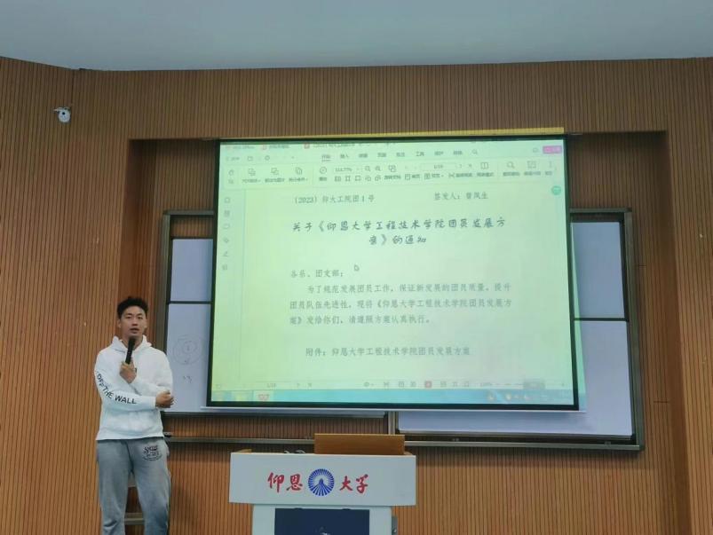 随后,李昭向新生介绍了入团流程,强调了要端正入团动机,鼓励新生早日加入中国共产主义青年团,并详细讲述了团组织推优入党的流程。最后李昭以校训“学会做人,守信笃行;学会做事,创业有成”勉励所有新生保持昂扬的姿态开展大学生活,在青春赛道上展现大学生风采。