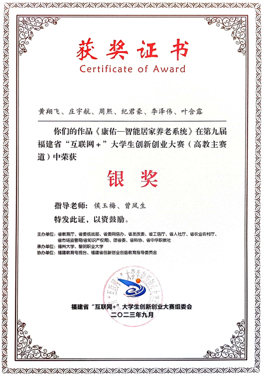 近日,从福建省传来喜讯,我院优秀学子在侯玉梅、曾凤生两位老师的指导下荣获2024年度福建省“互联网+”大学生创新创业大赛银奖。这是我院学生在省级重要赛事中的又一次卓越表现,充分展现了我院学生的创新精神和实践能力。