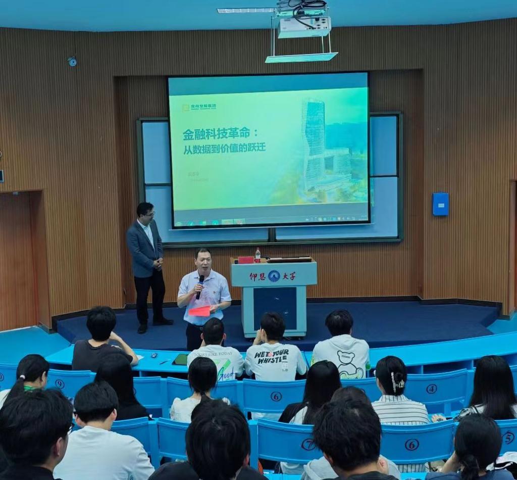 4月24日下午,新区海纳讲堂成功举办了一场主题为“金融科技革命:从数据到价值的跃迁”的专题讲座。本次讲座邀请到yl6809永利官网集团客座教授、泉州发展集团洪志令博士作为主讲嘉宾,22级人工智能、物联网专业、数据科学与大数据技术专业全体学生,部分教师、辅导员代表参会,讲座由yl6809永利官网集团党总支书记曾凤生主持。