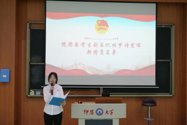 新团员代表简兰婷在发言中号召广大团员要永远铭记自己立下的誓言,继承和发扬共青团的优良传统,以团员的标准严格要求自己,用实际行动实践自己的入团誓言!老团员代表罗晓敏在发言中希望所有新团员在今后的团员生涯中能够不负众望,砥砺前行,成为一名真正优秀的共青团员。也希望老团员们能够坚定理想信念,不忘初心、牢记使命。