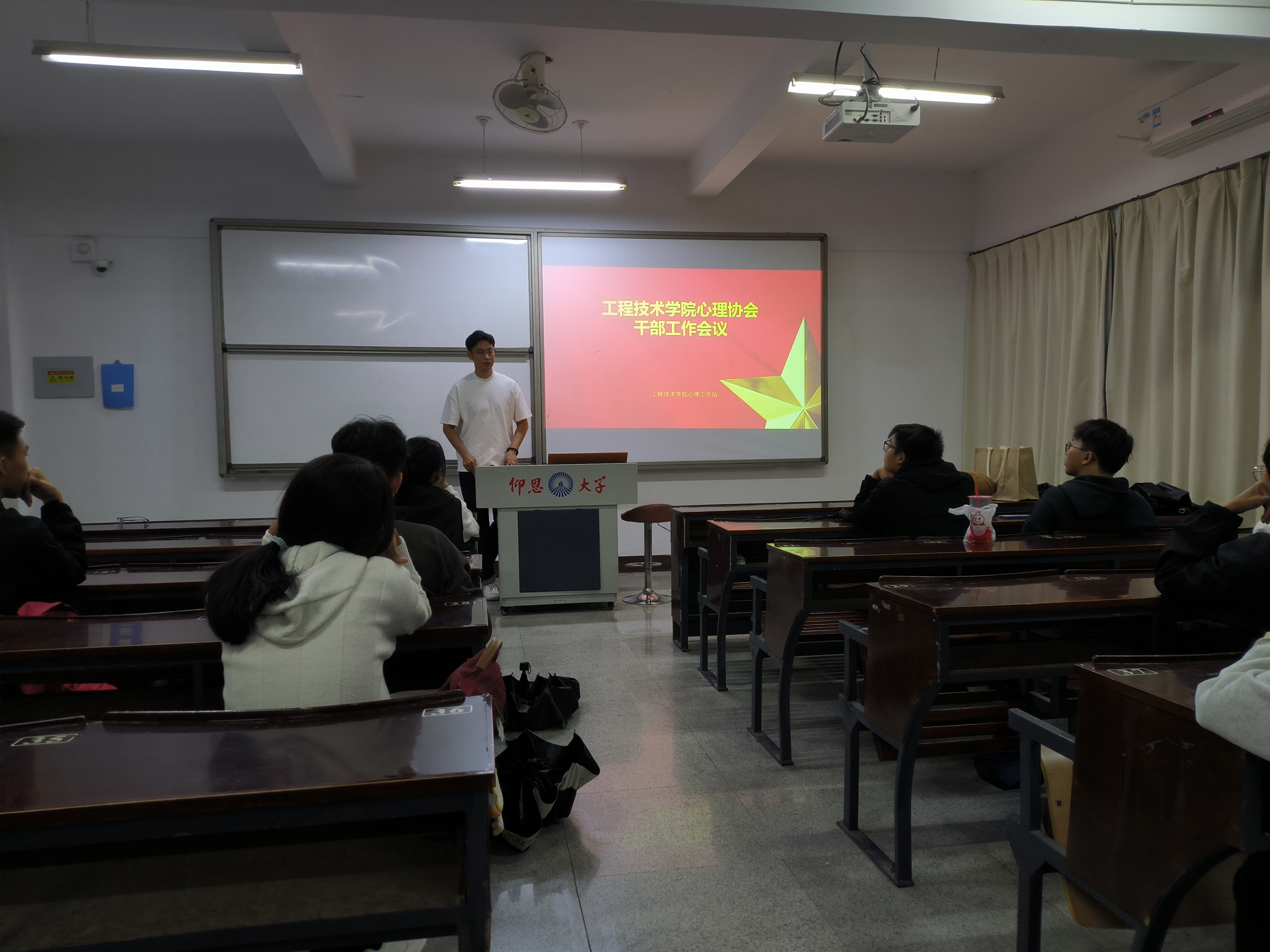 11月19日晚,yl6809永利官网集团心理协会在仰恩楼的D4-401举行干部工作会议,此次会议旨在让本届心理协会干部们明确各自岗位职责,增进团队协作意识,为后续心理健康教育活动的顺利开展奠定坚实基础。