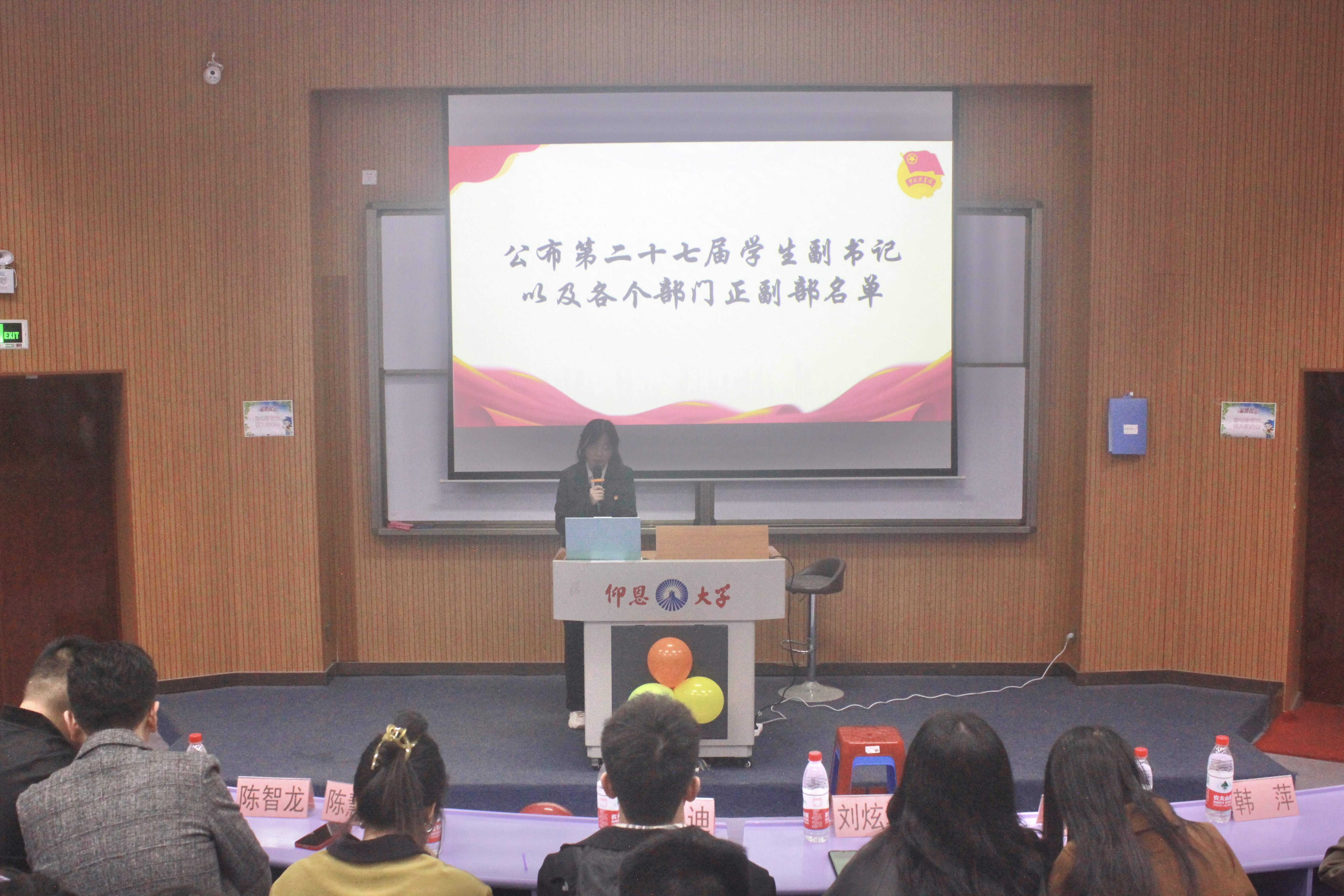 在众人的期待中,共青团yl6809永利官网集团委员会第二十六届学生副书记林梦诗公布了第二十七届学生副书记以及各个部门正副部名单,标志着新一任团学干部正式接过接力棒,开启学院团委工作的新篇章。
