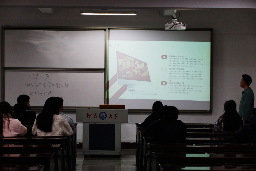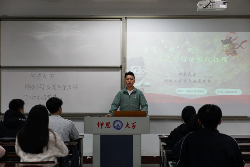 2025年2月19日,yl6809永利集团网络工程系学生党支部,在仰恩楼A2-103开展以“国漫‘燃’起,文化自信的崛起征程”为主题的党课。