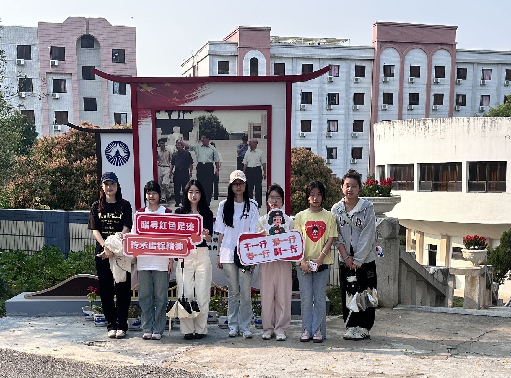 活动中,学生们手持学习雷锋精神相关主题KT板,依次走访校园内的西苑食堂门口红色雕像、飞机草坪、校史馆等红色学习点,在讲解员的带领下,同学们通过珍贵的历史图片、实物展陈,深入了解红色故事,感悟“螺丝钉精神”的时代内涵。