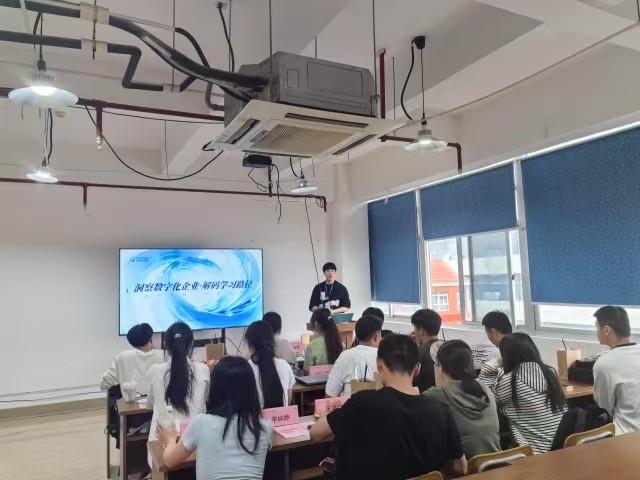 其次,在专业就业讲解与项目实操(小型园区网)环节,企业方谢伟聚焦网络安全、大数据等领域,为学生党员详细介绍技术趋势和行业需求,助力学生明晰职业发展方向,推动校企产学研合作