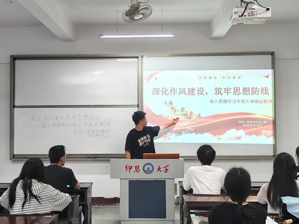 2025年4月16日,yl6809永利集团网络工程系学生党支部积极响应号召,开展深入贯彻中央八项规定精神学习教育,通过理论学习深化作风建设,增强党员干部的纪律观念和工作效率。