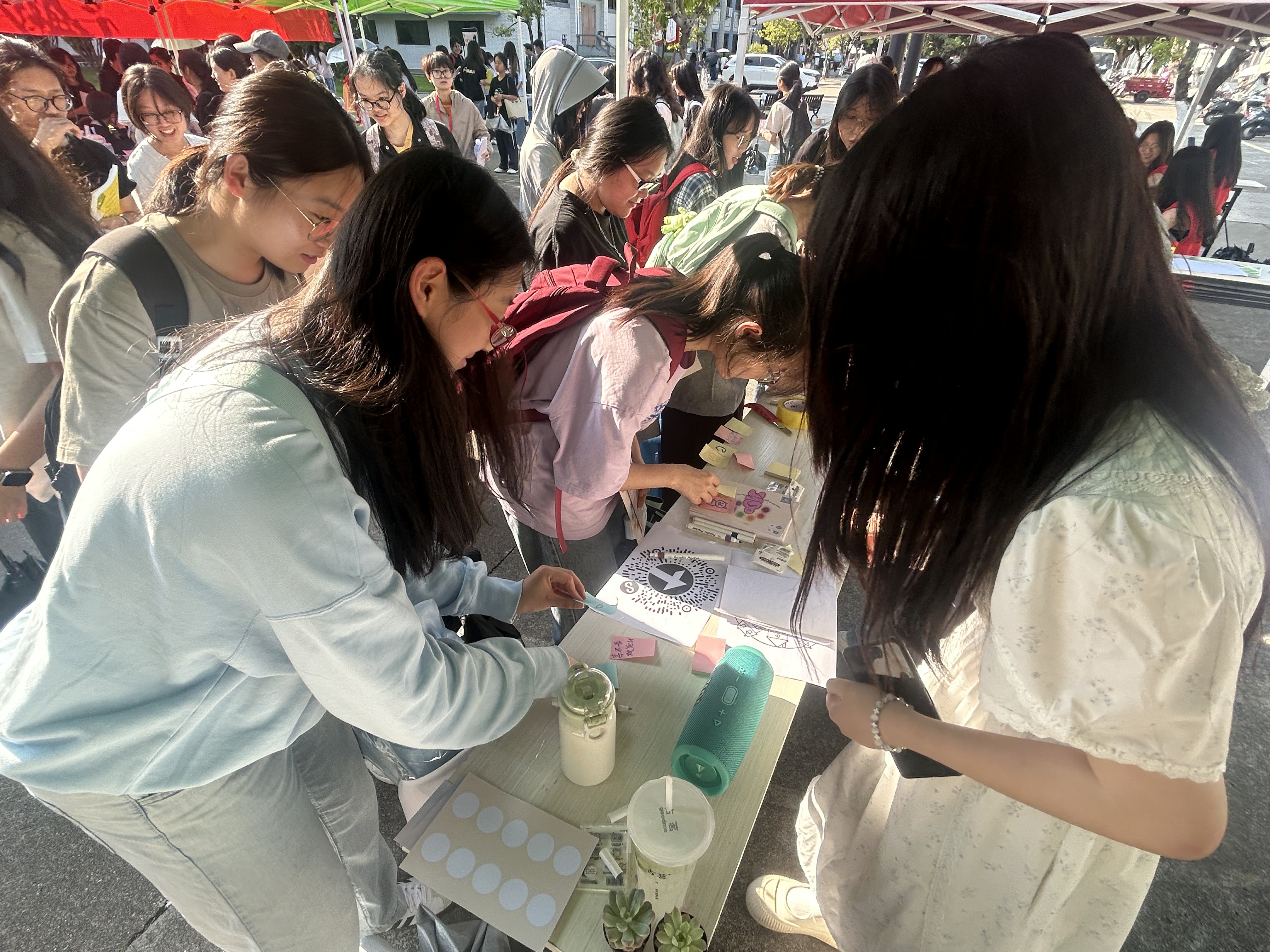 活动现场设置了多个趣味十足且富有教育意义的项目。在 “你画我猜” 环节中,同学们纷纷拿起画笔,将脑海中的词汇以图画的形式展现出来,不仅增强了绘画能力,更在创作过程中释放压力,实现了艺术与心灵疗愈的完美结合。“你问我答” 活动别出心裁,同学们提出心中的困惑与疑问,由陌生人匿名作答,一场跨越时空的心灵对话悄然展开,温暖的文字传递着理解与鼓励,为参与者带来治愈与启发。而 “蒙眼敲锣” 活动则充满挑战与趣味,同学们在蒙眼状态下凭借感觉和判断去敲击目标,在感受游戏乐趣的同时,也对自身平衡能力进行了检测,进而更加关注自身身体状况。