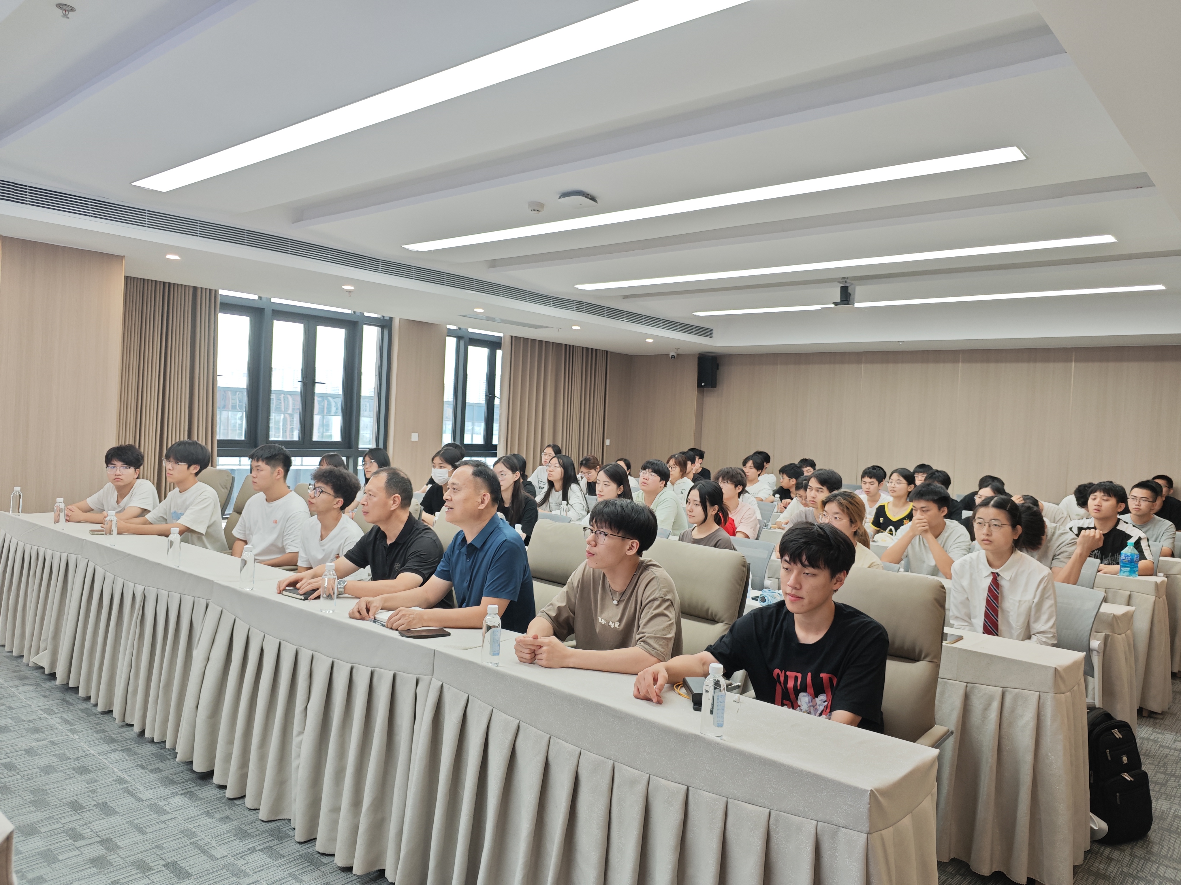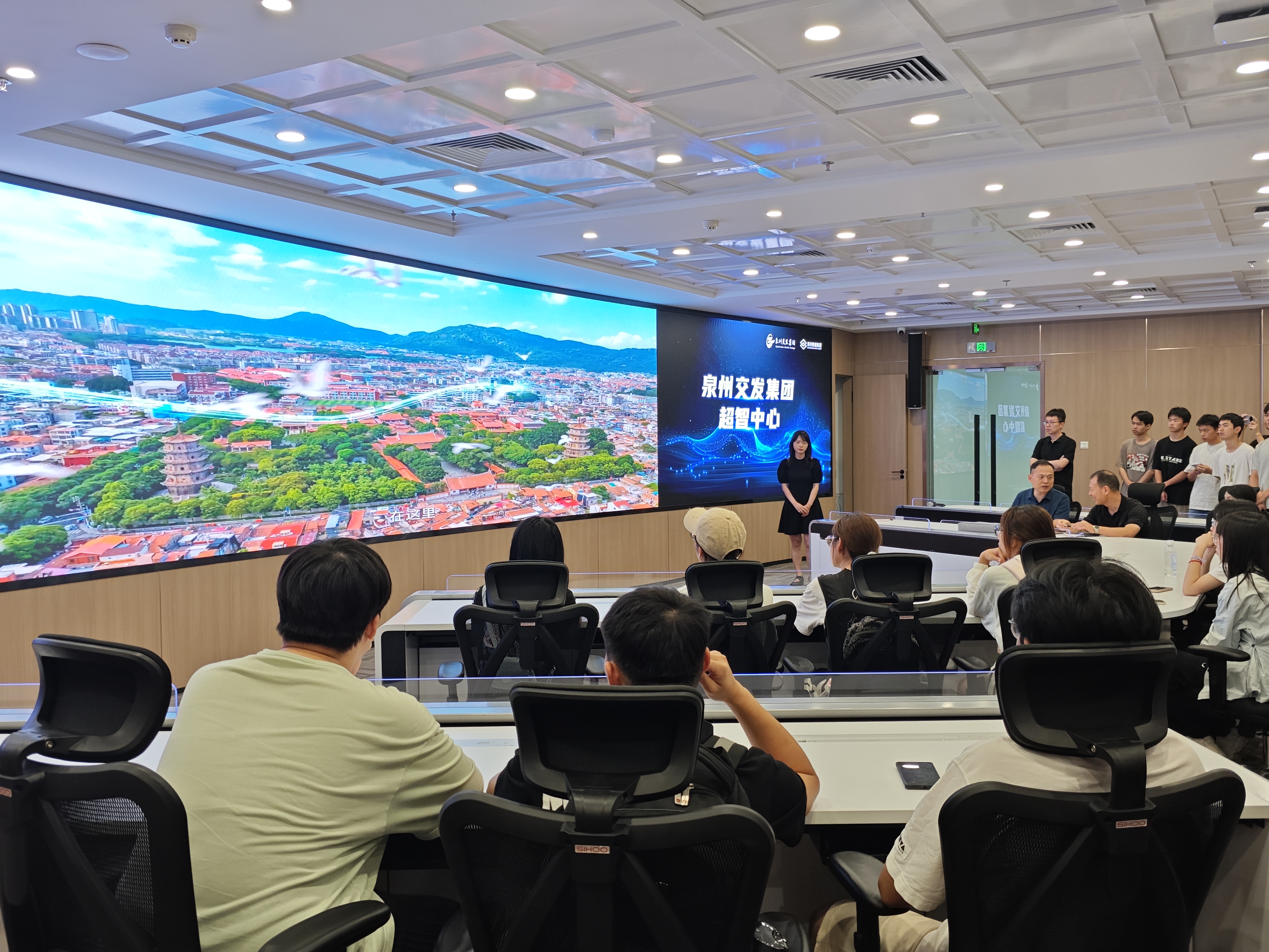 抵达泉州数据集团后,工作人员以 “数实相融,赋智未来” 为主题,对泉州交发集团超智中心进行详细介绍,全方位展示超智中心在数智融合领域的创新实践。期间,重点呈现泉州交发集团应急指挥调度驾驶舱,借助直观演示与专业讲解,让师生深入了解数智技术如何赋能应急管理,实现高效指挥调度,为城市安全运行提供支撑。