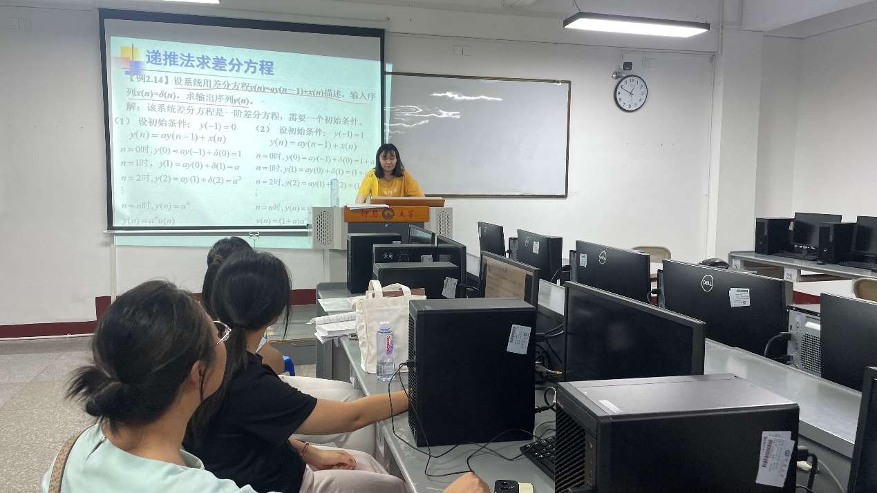 本次参加试讲的老师为苏瑜萍老师,授课内容为《数字信号处理》课程中的《离散傅里叶变换》。试讲过程中,首先回顾时域离散信号的傅里叶变换和Z变换,明确二者作为数字信号处理领域基础数学变换的核心价值,但是两种变换的频率域结果为连续函数,不能被实际的数字系统处理,引出了离散傅里叶变换DFT,在此基础上,介绍了DFT的定义及其物理意义,展现了清晰的教学思路和初步教学设计能力。试讲结束后,教师们围绕教学内容和课堂管理展开点评与讨论,既肯定了新教师在在教学设计上的亮点与进步,也针对一些不足之处提出了优化建议,如增加介绍DFT的实际应用案例,帮助学生直观理解知识点的现实价值,在课堂中增加与学生的互动,增强课堂参与感等。