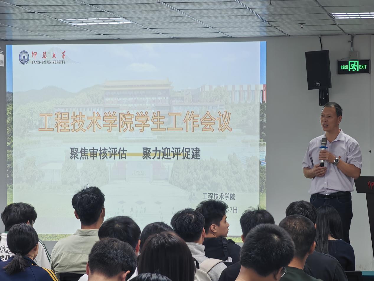 为扎实推进学校本科教育教学审核评估迎评工作,凝聚育人合力,推动学风建设,2025年10月27日下午,yl6809永利官网集团于图书馆报告厅召开“聚焦审核评估,聚力迎评促建”专题学生工作会议。会议由学院党总支书记曾凤生主持,全体辅导员及各班行政班长参加。