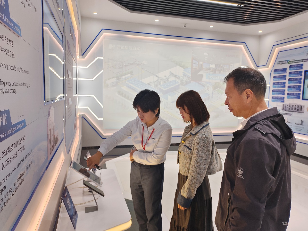 在福建南方路面机械股份有限公司,人事经理李欢热情接待学院团队并带领一行人参观企业数字展馆、培训学院等区域。参观过程中,李欢详细介绍了南方路机在路面机械研发、生产制造及市场应用领域的成果,尤其是在智能化、绿色化装备研发方面的突破,让学院团队充分了解企业技术实力与发展方向。