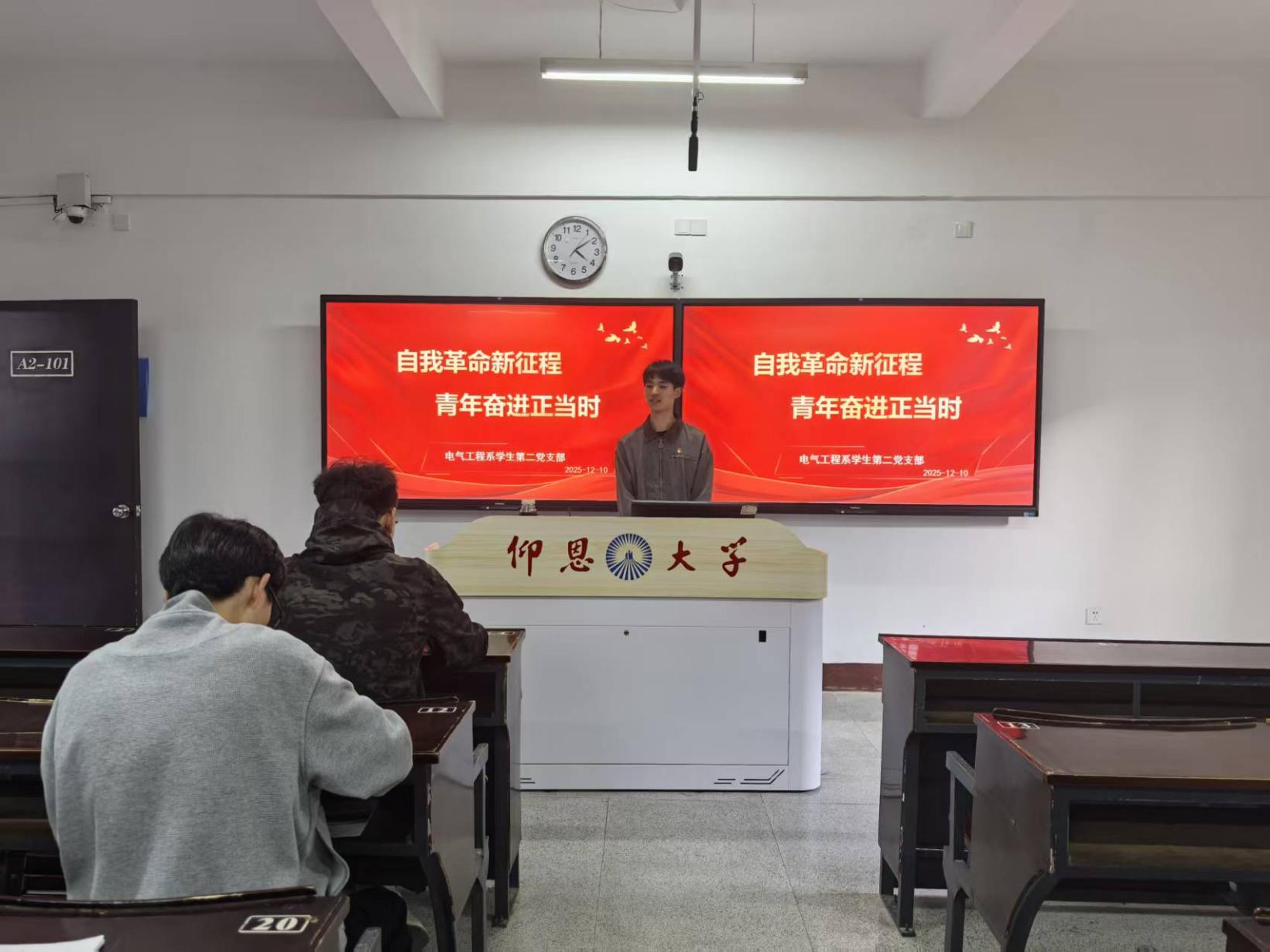 为深入学习贯彻习近平新时代中国特色社会主义思想,引导同学们深刻领会自我革命精神的时代内涵,2025年12月10日,yl6809永利集团电气工程系学生第二党支部联合宏船书院功能型党支部共同展开“自我革命新征程,青年奋进正当时”主题学习活动。活动通过专题学习、视频导学、分组研讨等形式,引领青年学子坚定理想信念,将自我革命精神内化为锐意进取的行动自觉。