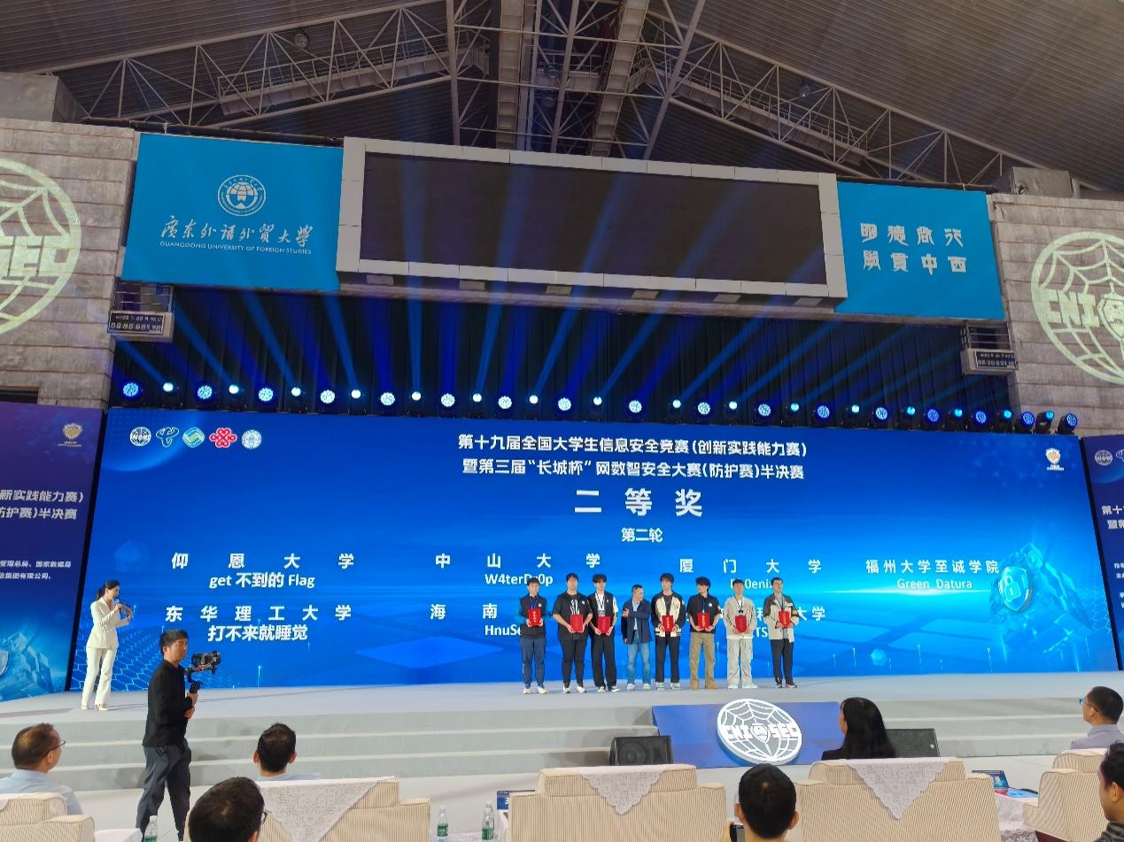 本次半决赛经过初赛选拔共有100个队伍参加本次区域赛,其中我校共有两只队伍晋级半决赛。经过一天的激烈角逐,我校战队get不到Flag战队李佳晟、吴哲涔和魏云晖在赛前队员突发受伤退赛的不利情况下,凭借扎实的专业知识、出色的业务能力以及灵活的应变能力,取得了二等奖的好成绩,为学校赢得了荣誉。